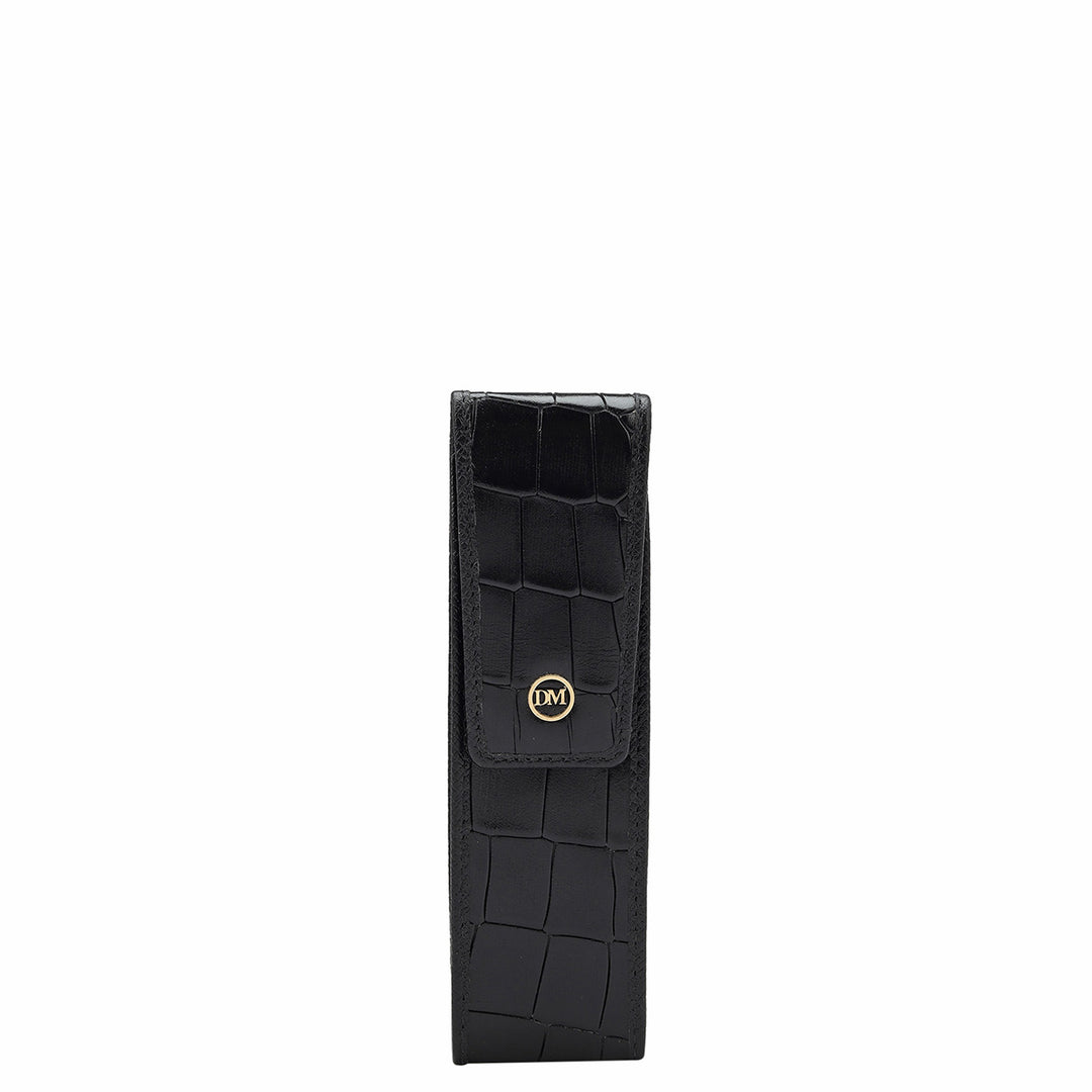 Croco Leather Pen Case - Black