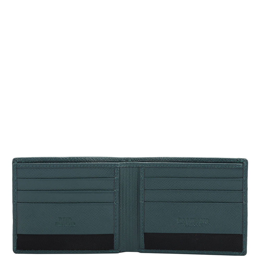 Crafted from textured leather, Da Milano men's bifold wallet offers a compact yet stylish design. Featuring easy-to-organize compartments, card slots, and pockets, it combines practicality with elegance. Subtle branding on the front enhances its refined appearance.