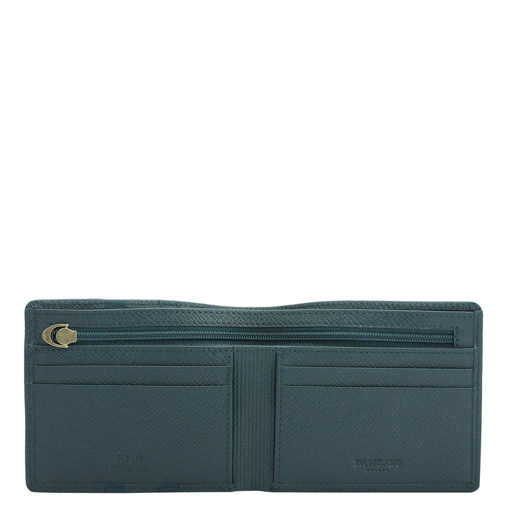 Crafted from textured leather, Da Milano men's bifold wallet offers a compact yet stylish design. Featuring easy-to-organize compartments, card slots, and pockets, it combines practicality with elegance. Subtle branding on the front enhances its refined appearance.