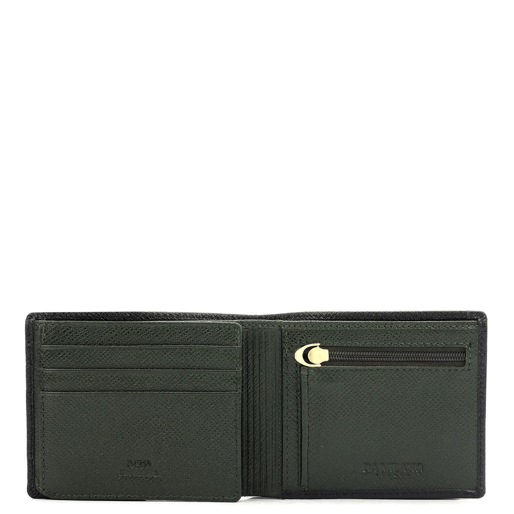 Crafted from textured leather, Da Milano men's bifold wallet offers a compact yet stylish design. Featuring easy-to-organize compartments, card slots, and pockets, it combines practicality with elegance. Subtle branding on the front enhances its refined appearance.