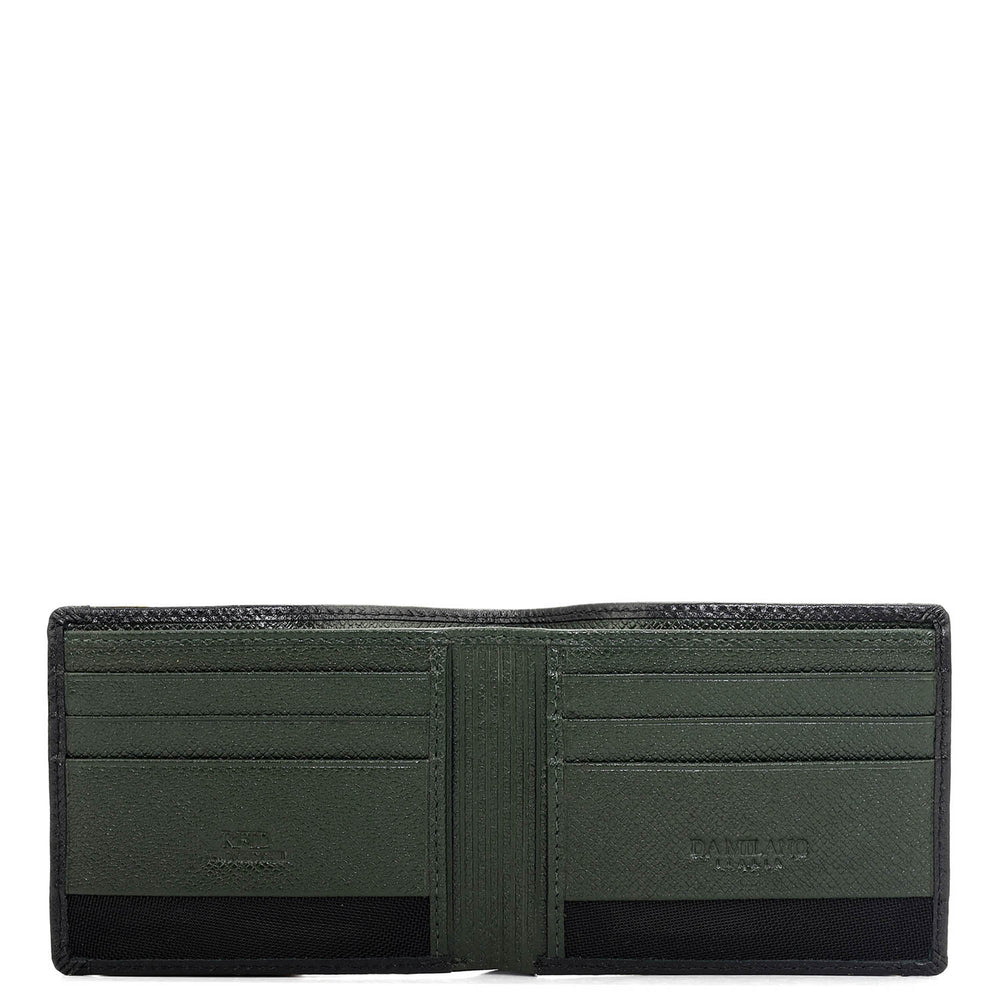 Crafted from textured leather, Da Milano men's bifold wallet offers a compact yet stylish design. Featuring easy-to-organize compartments, card slots, and pockets, it combines practicality with elegance. Subtle branding on the front enhances its refined appearance.