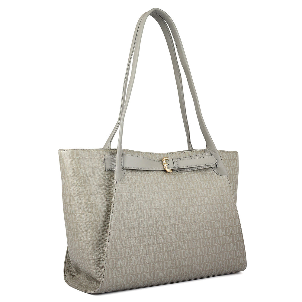 The ultimate everyday companion, this Shopper blends generous proportions with understated sophistication. Crafted in DM-print leather paired with smooth plain leather accents, the signature belt detail wraps seamlessly from the front flap pocket through the gussets to the back, adding a touch of structure and style. Designed with two roomy compartments and a secure top zip closure.