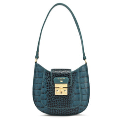 Small Croco Leather Baguette  - Honey