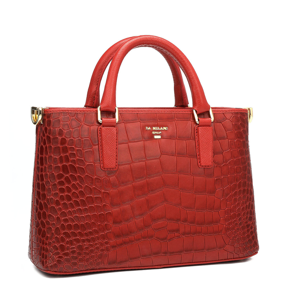 Small Croco Leather Satchel - Red