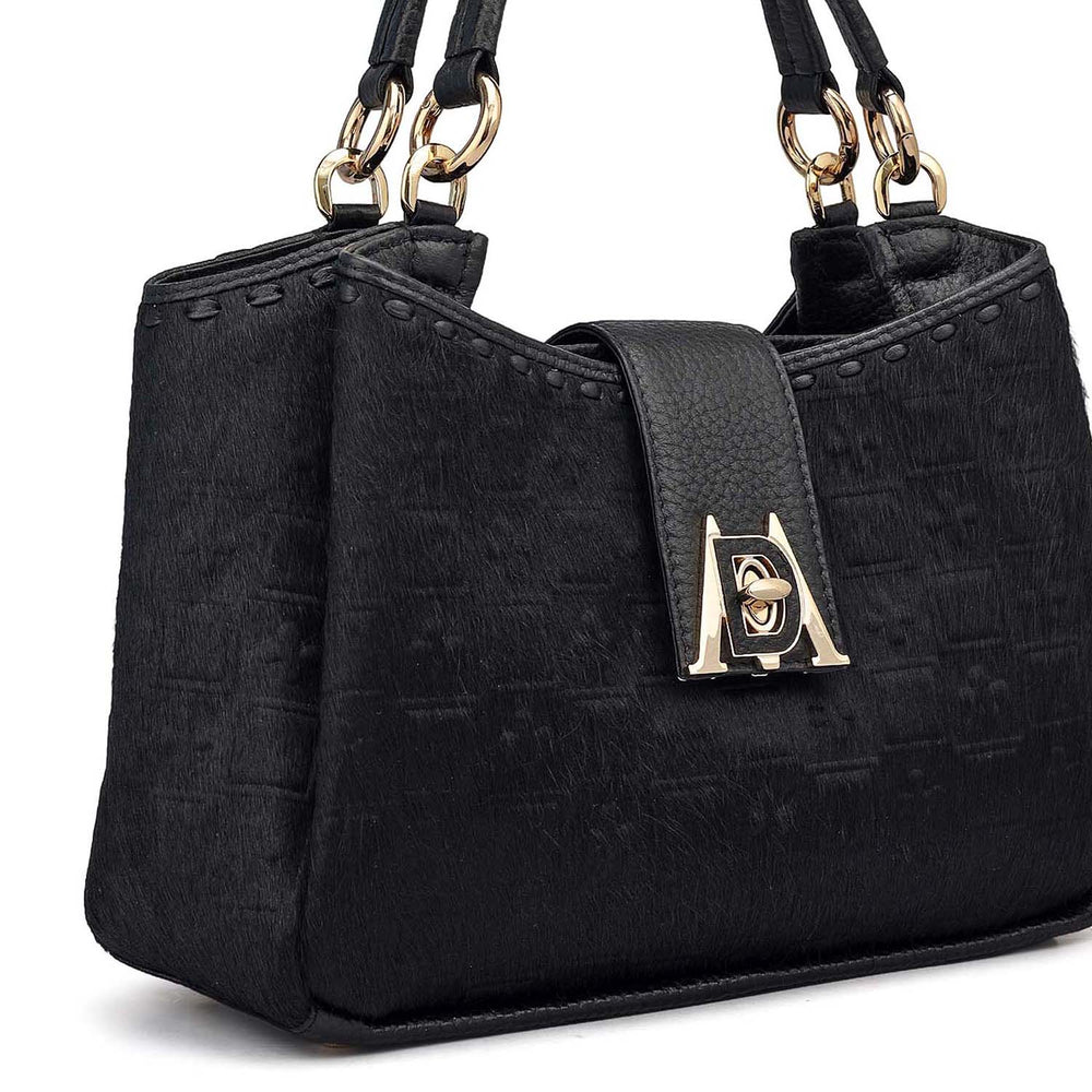 Small Fur Wax Leather Satchel - Black