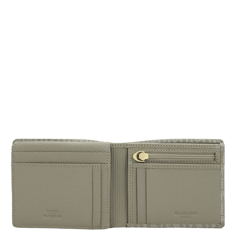 Crafted from textured leather, Da Milano men's bifold wallet offers a compact yet stylish design. Featuring easy-to-organize compartments, card slots, and pockets, it combines practicality with elegance. Subtle branding on the front enhances its refined appearance.