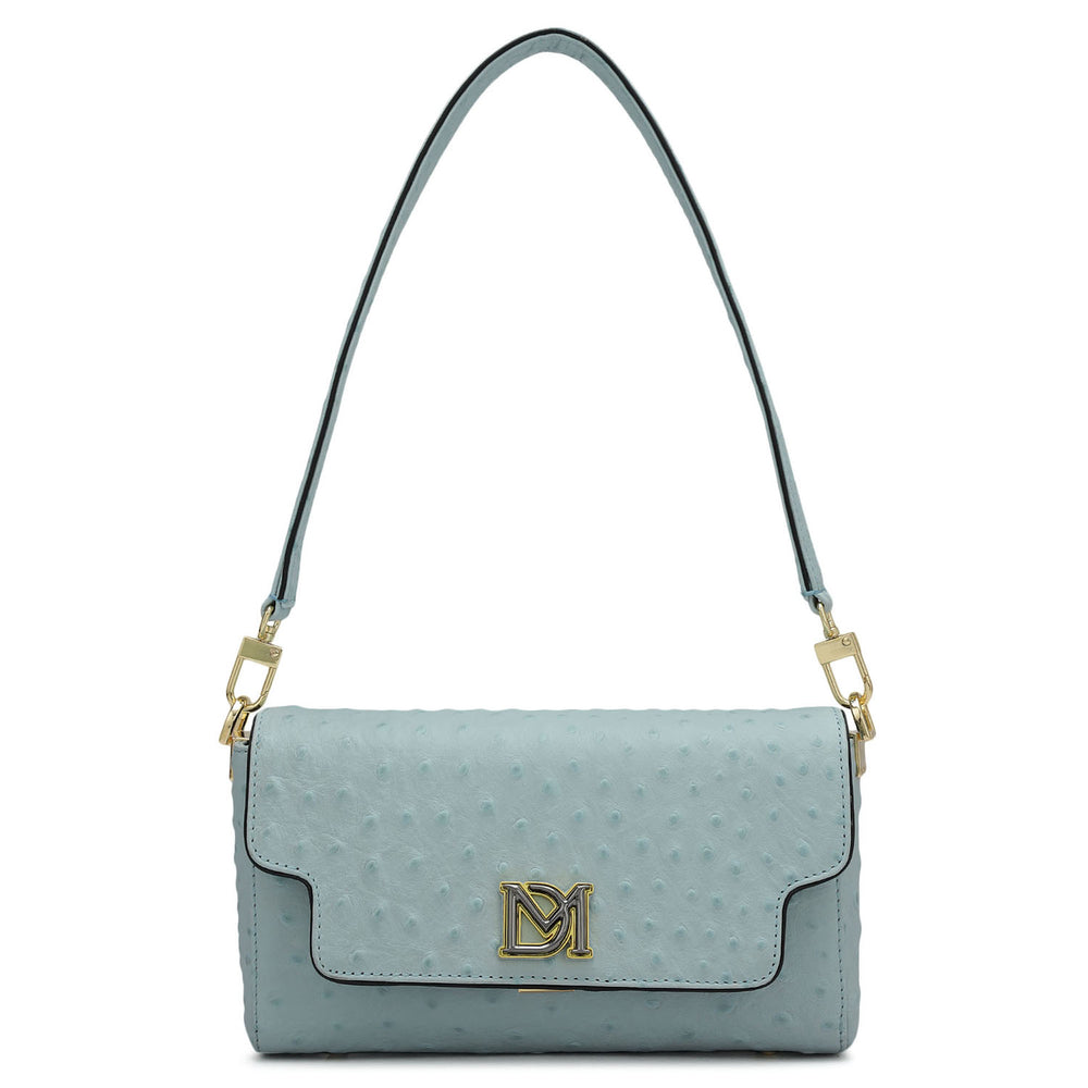 Small Ostrich Leather Shoulder Bag - Ice Blue