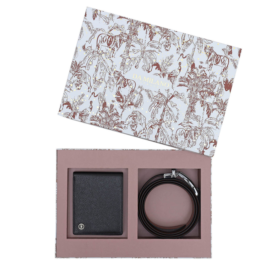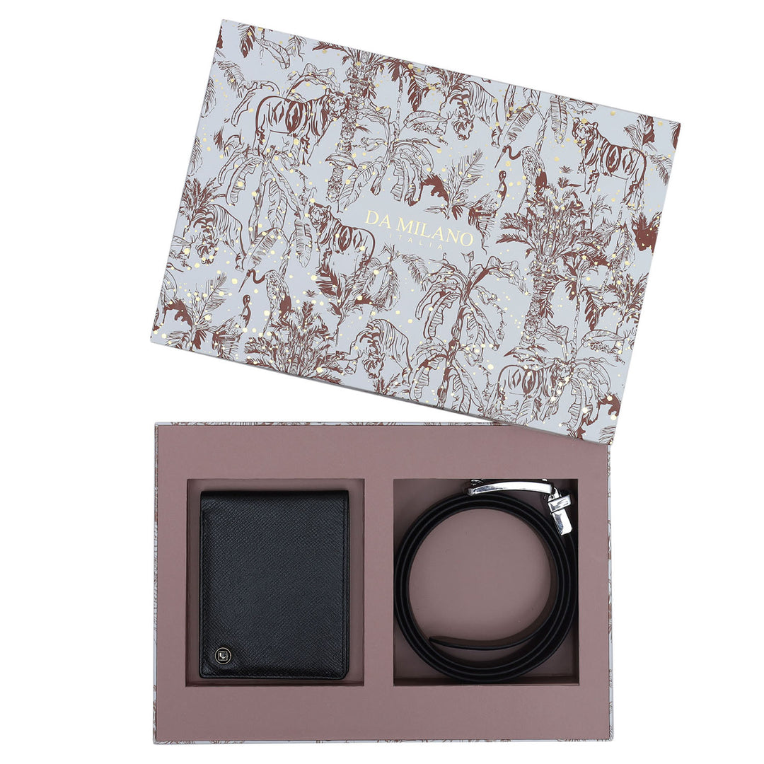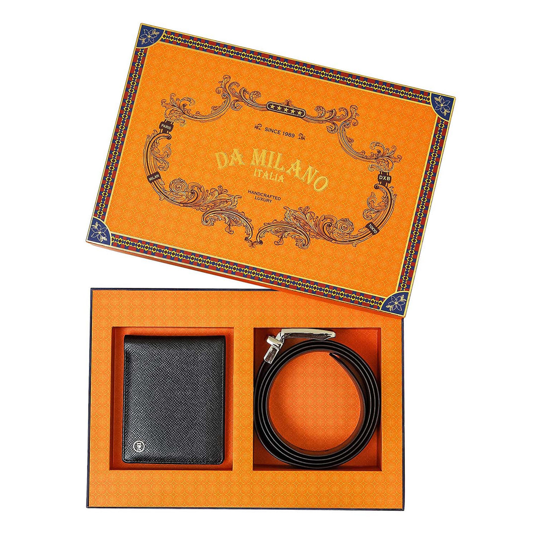 Black Saffiano Franzy Leather Mens Wallet & Belt Gift Set