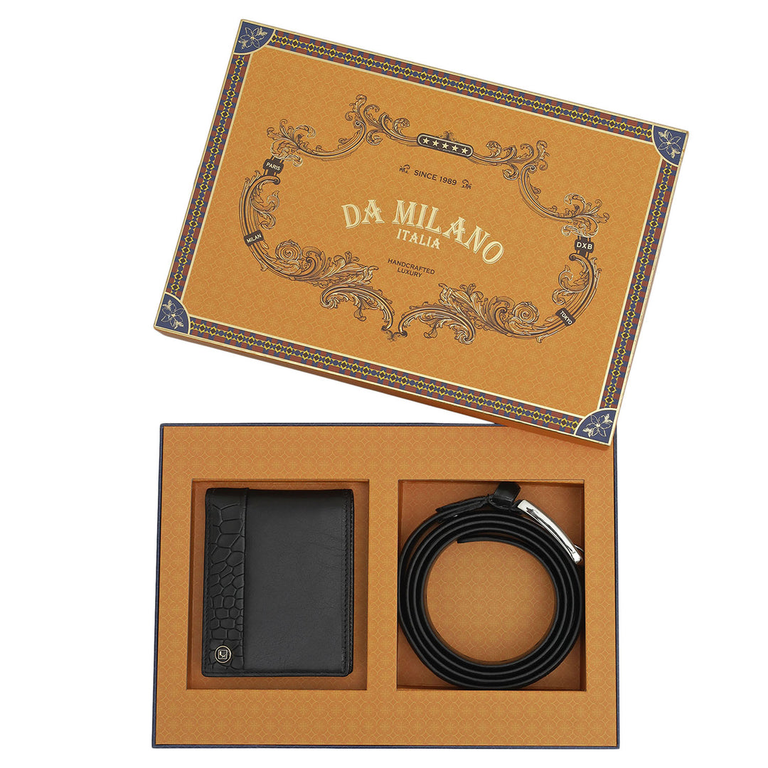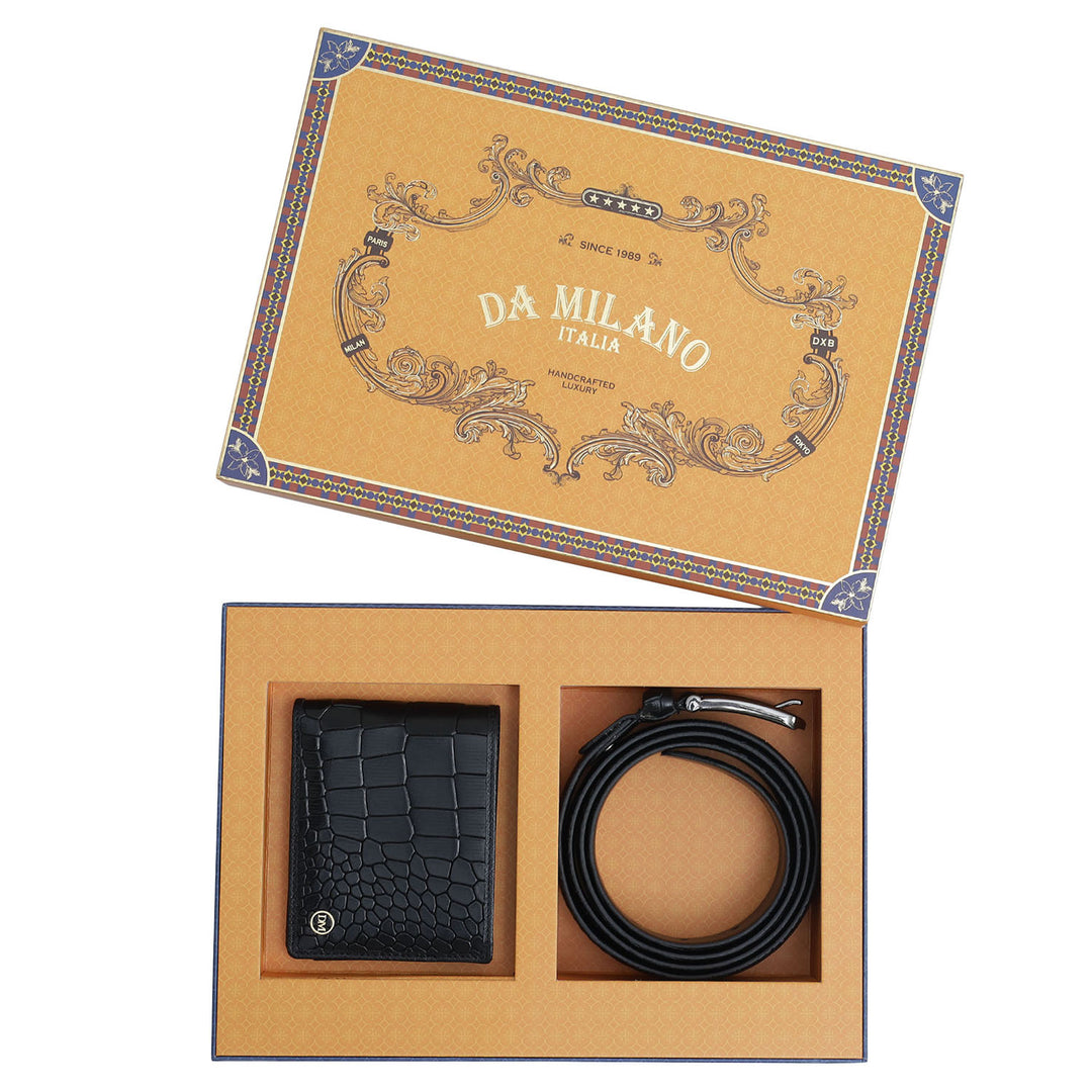 Black Croco Leather Mens Wallet & Belt Gift Set