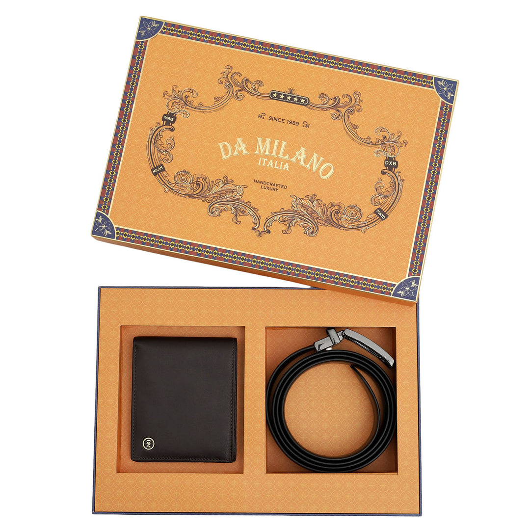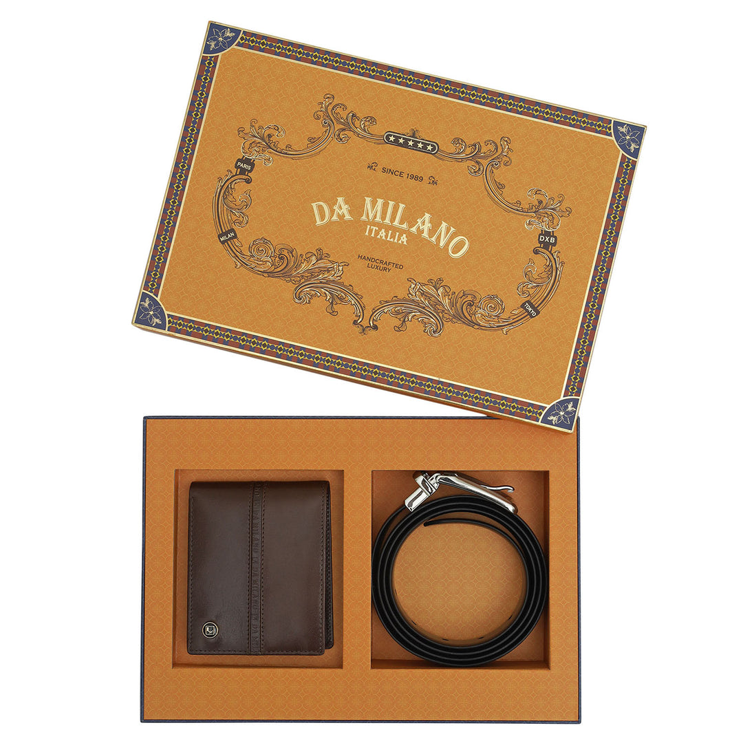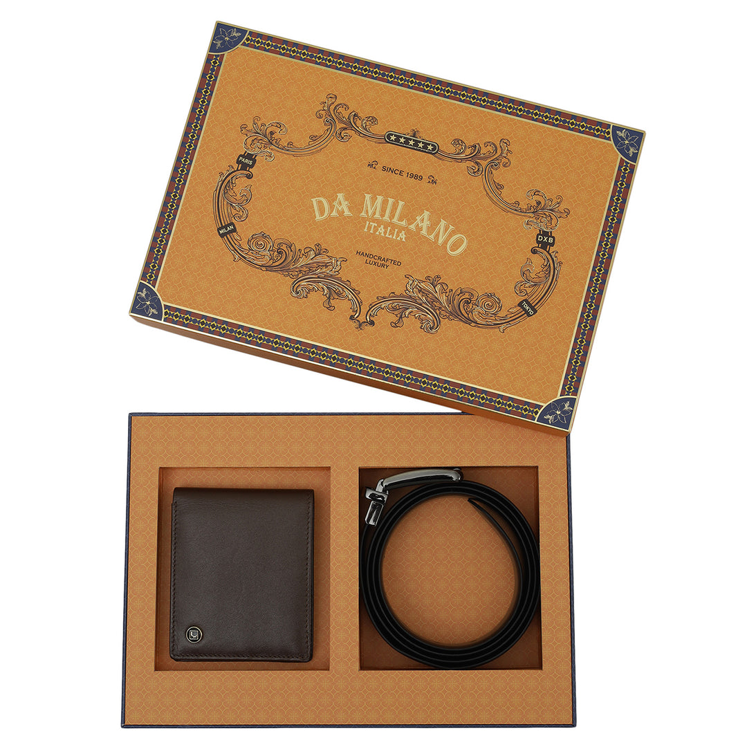 Brown Plain Leather Mens Wallet & Belt Gift Set