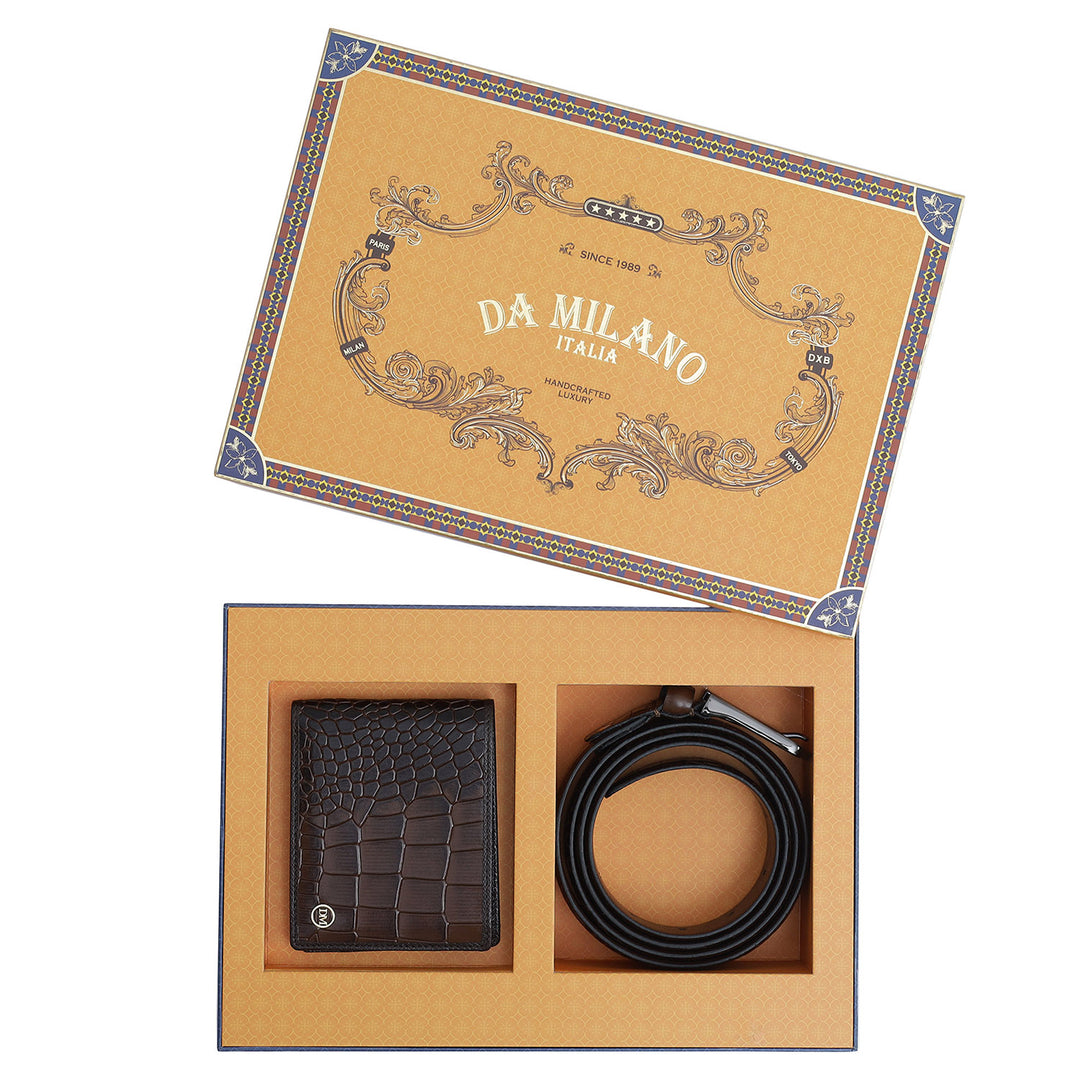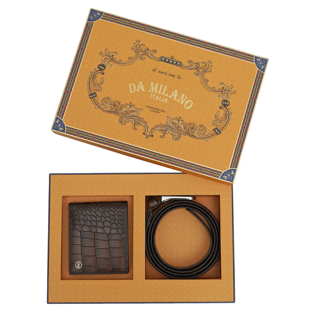 Brown Croco Franzy Mens Wallet & Keychain Leather Gift Set