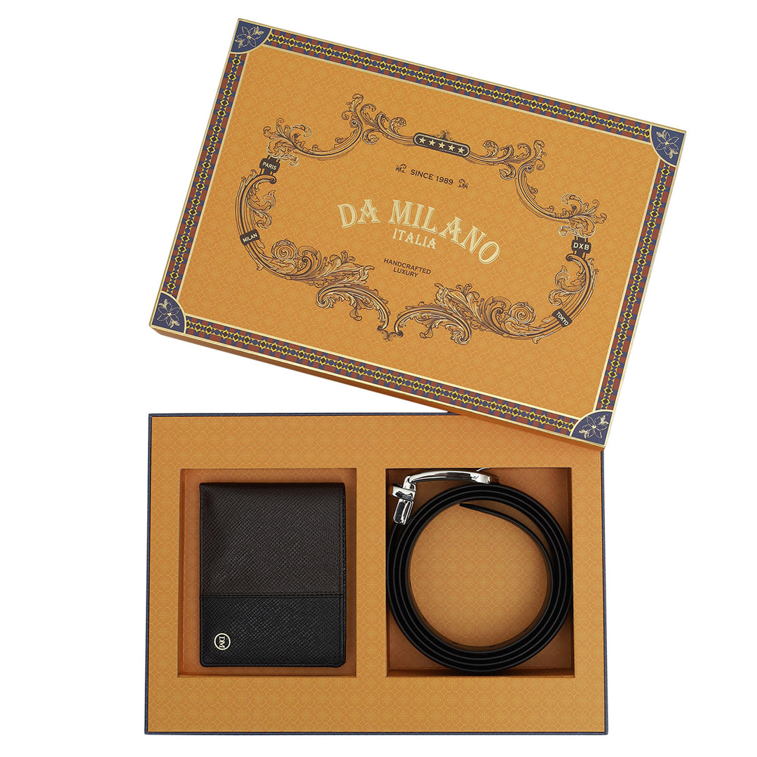Chocolate Black Franzy Leather Mens Wallet & Belt Gift Set