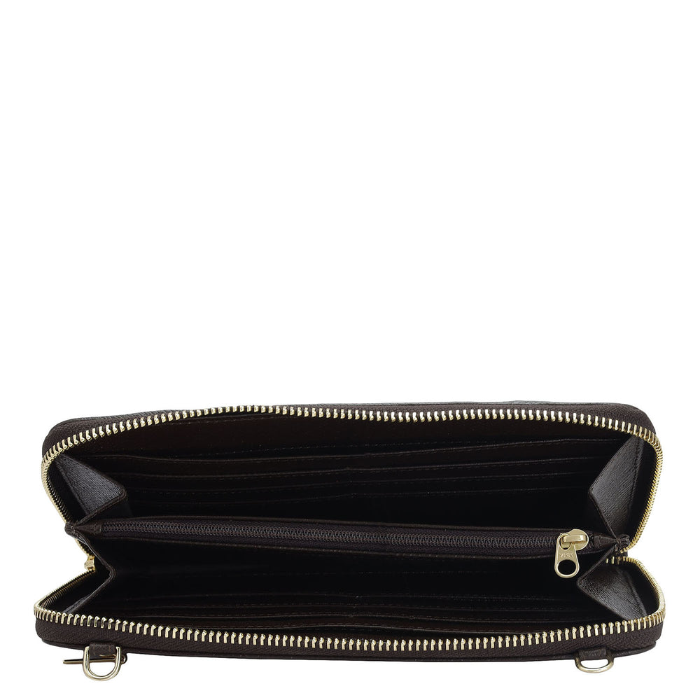 Croco Franzy Leather Ladies Sling Wallet - Black