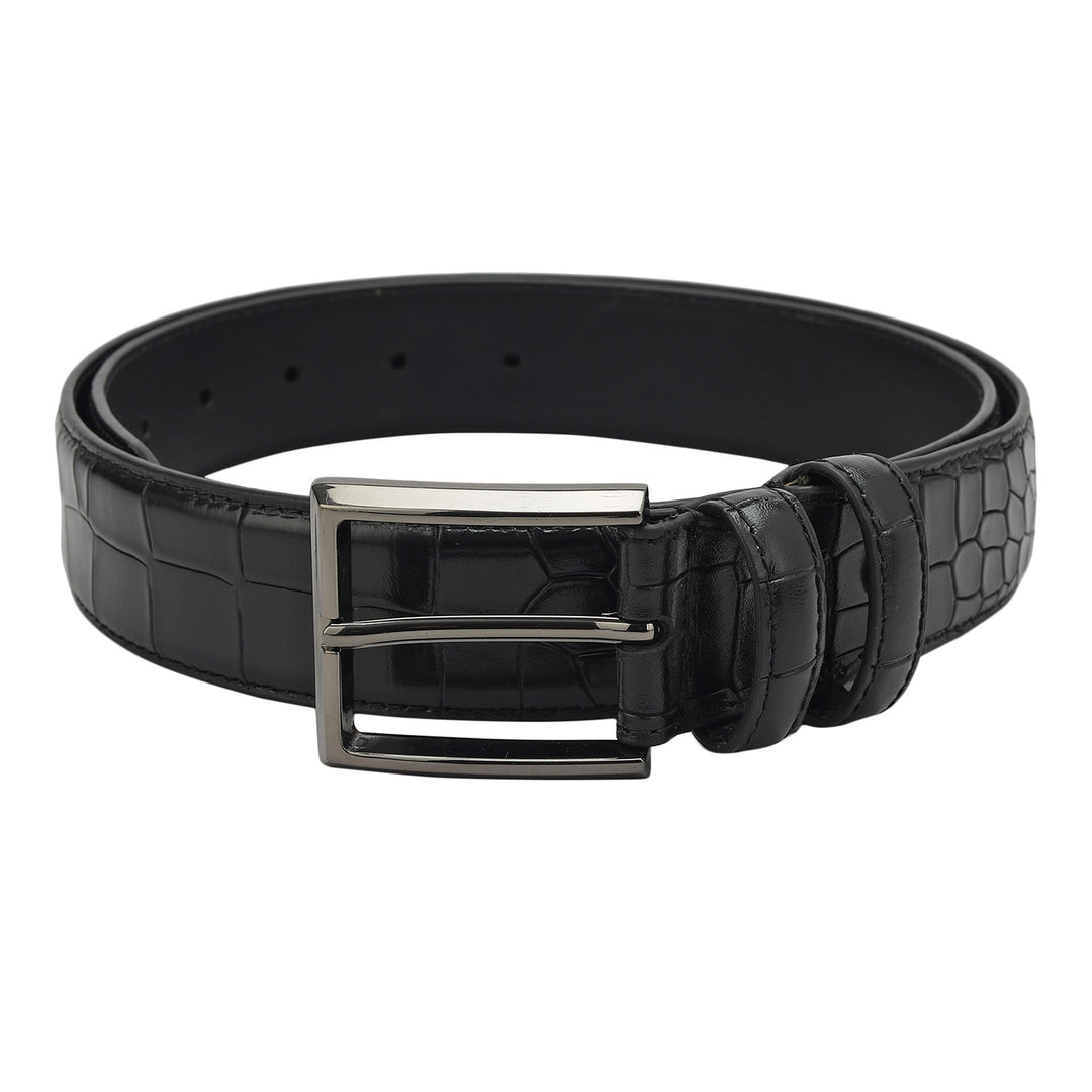 Formal Mat Emboss Leather Mens Belt - Cognac