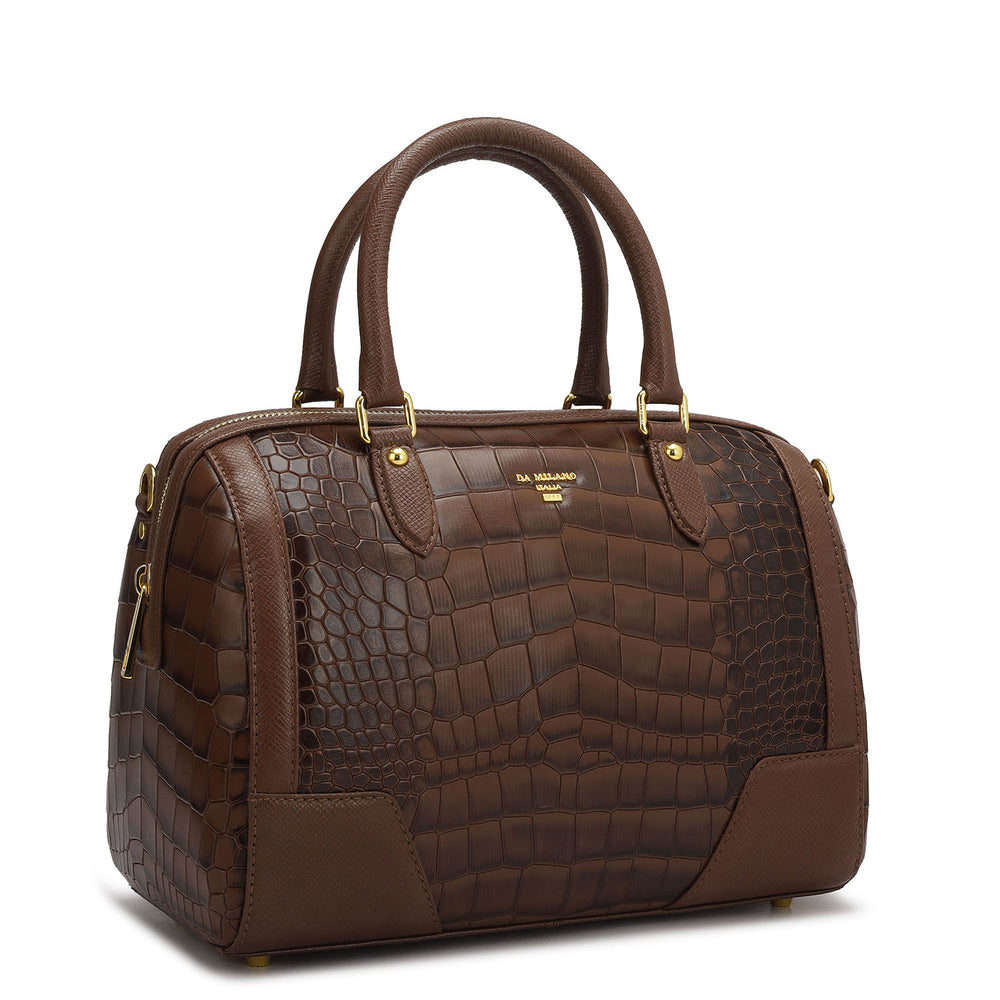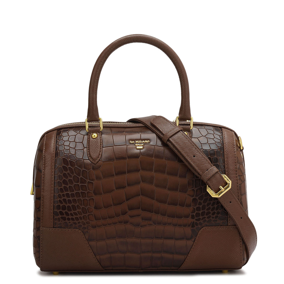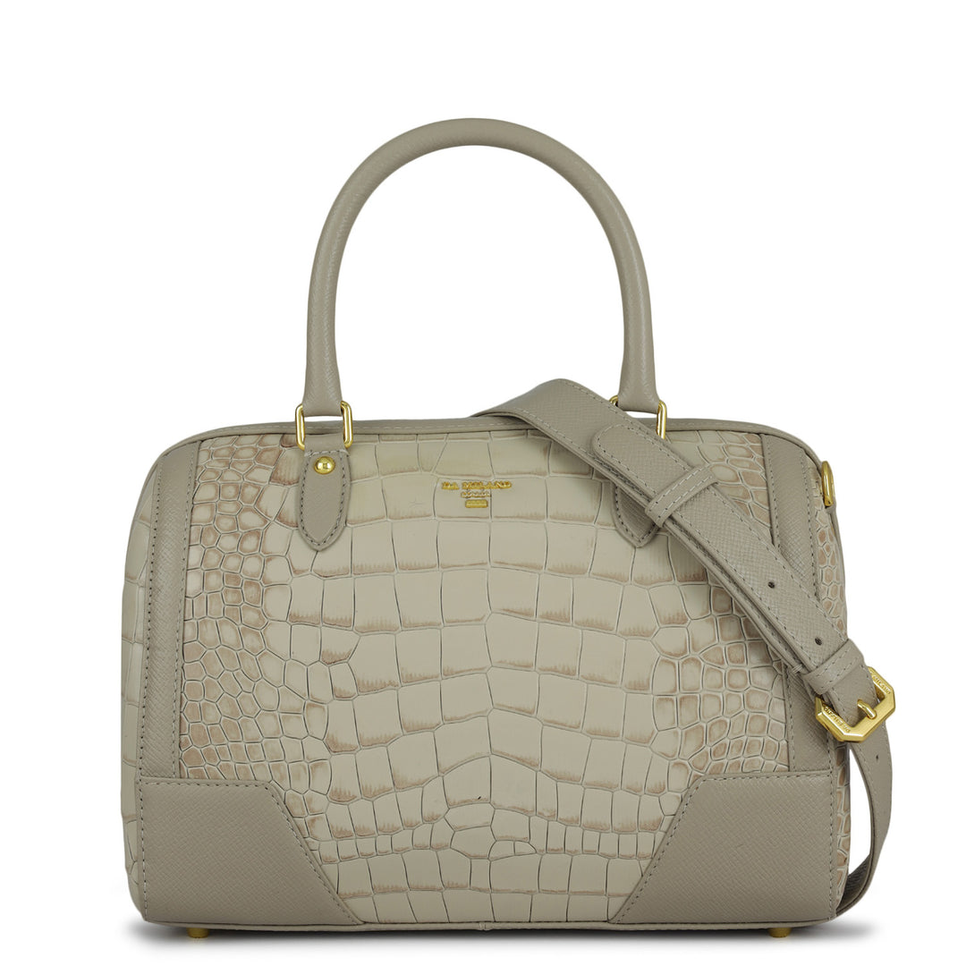 Medium Croco Franzy Leather Book Tote - Stone Grey