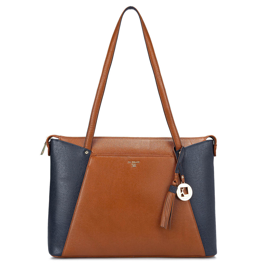 Medium Franzy Leather Tote - Cognac & Navy
