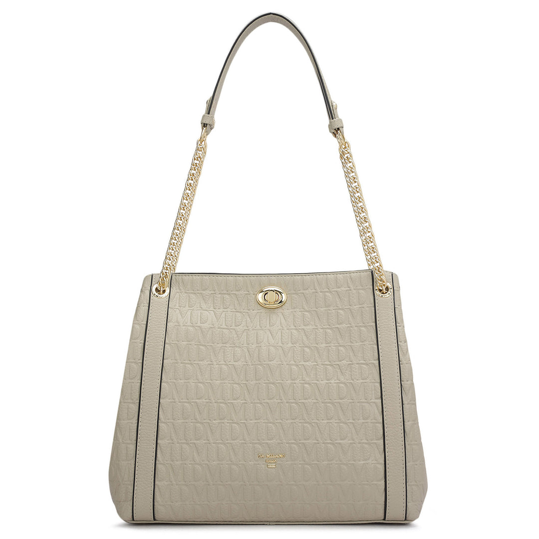 Medium Monogram Franzy Leather Satchel - Stone Grey