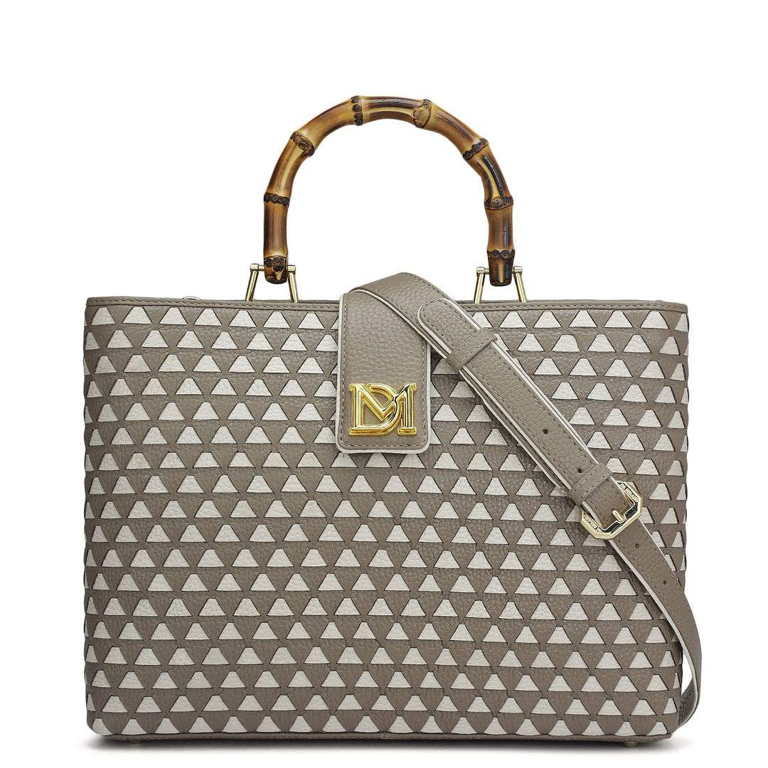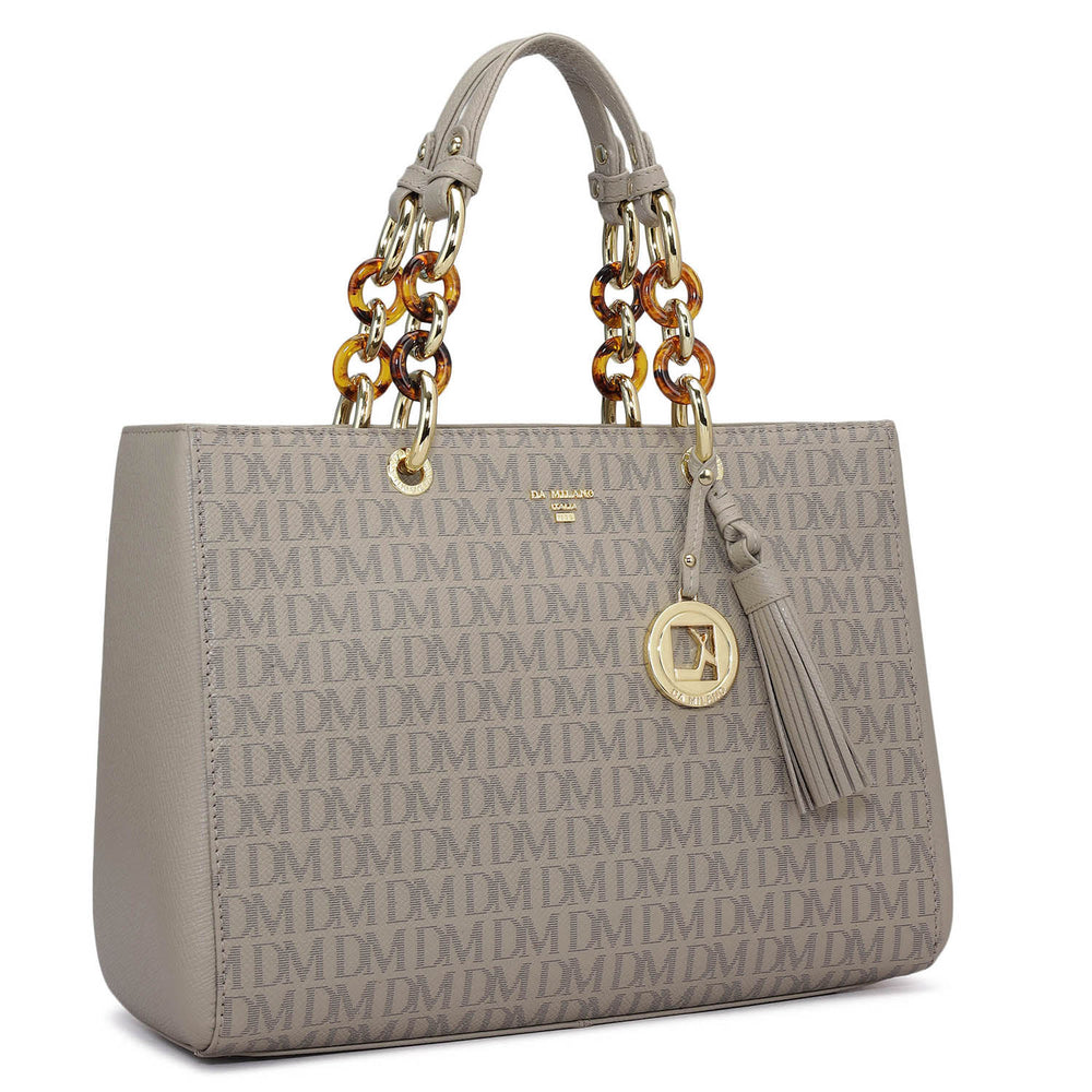 Medium Monogram Leather Book Tote - Stone Grey