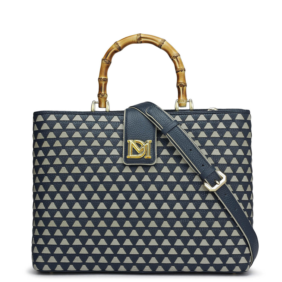 Medium Mat Wax Leather Satchel - Navy