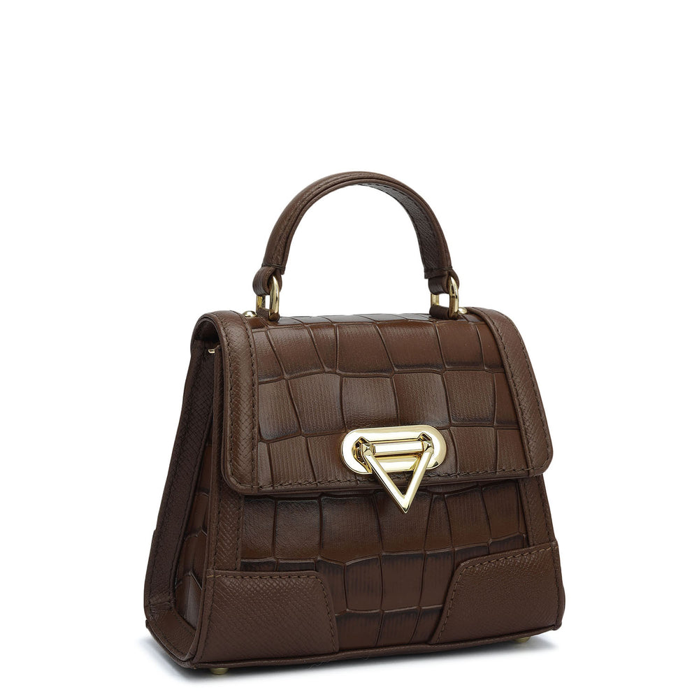 Small Croco Franzy Leather Shoulder Bag - Wine