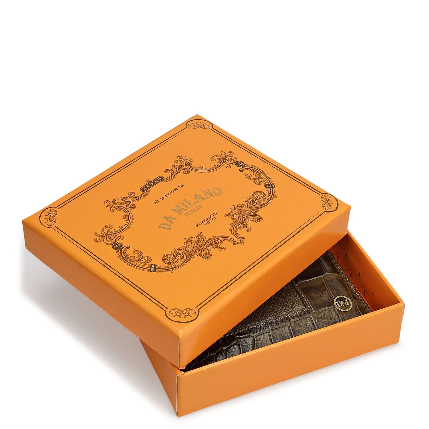 Crafted from textured leather, Da Milano men's bifold wallet offers a compact yet stylish design. Featuring easy-to-organize compartments, card slots, and pockets, it combines practicality with elegance. Subtle branding on the front enhances its refined appearance.