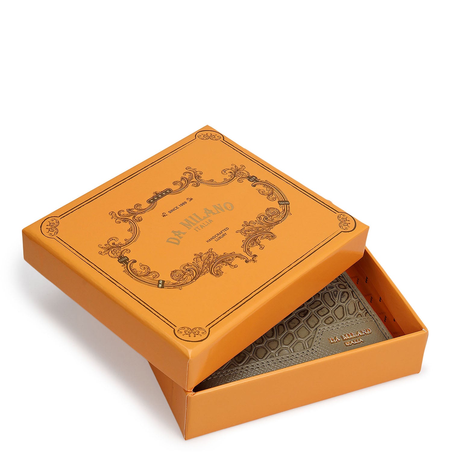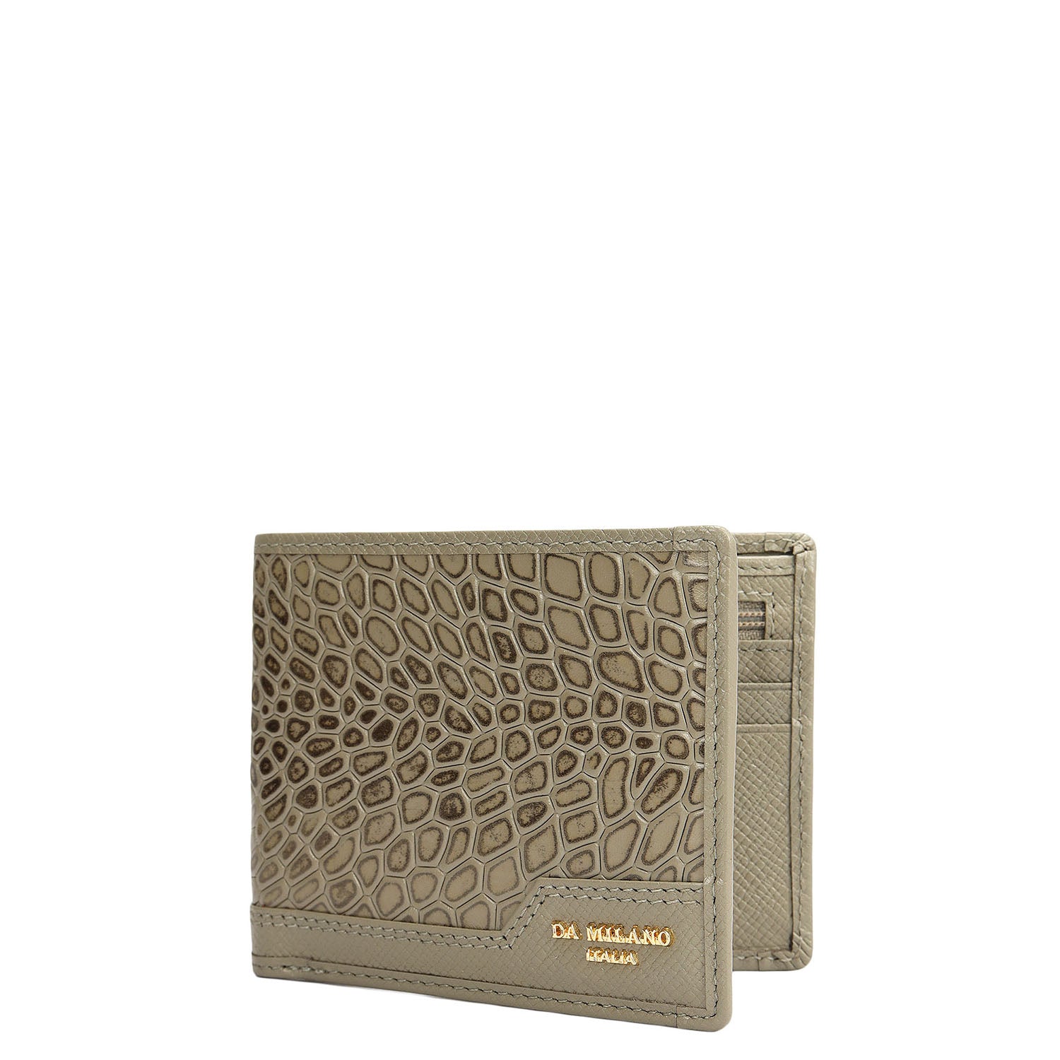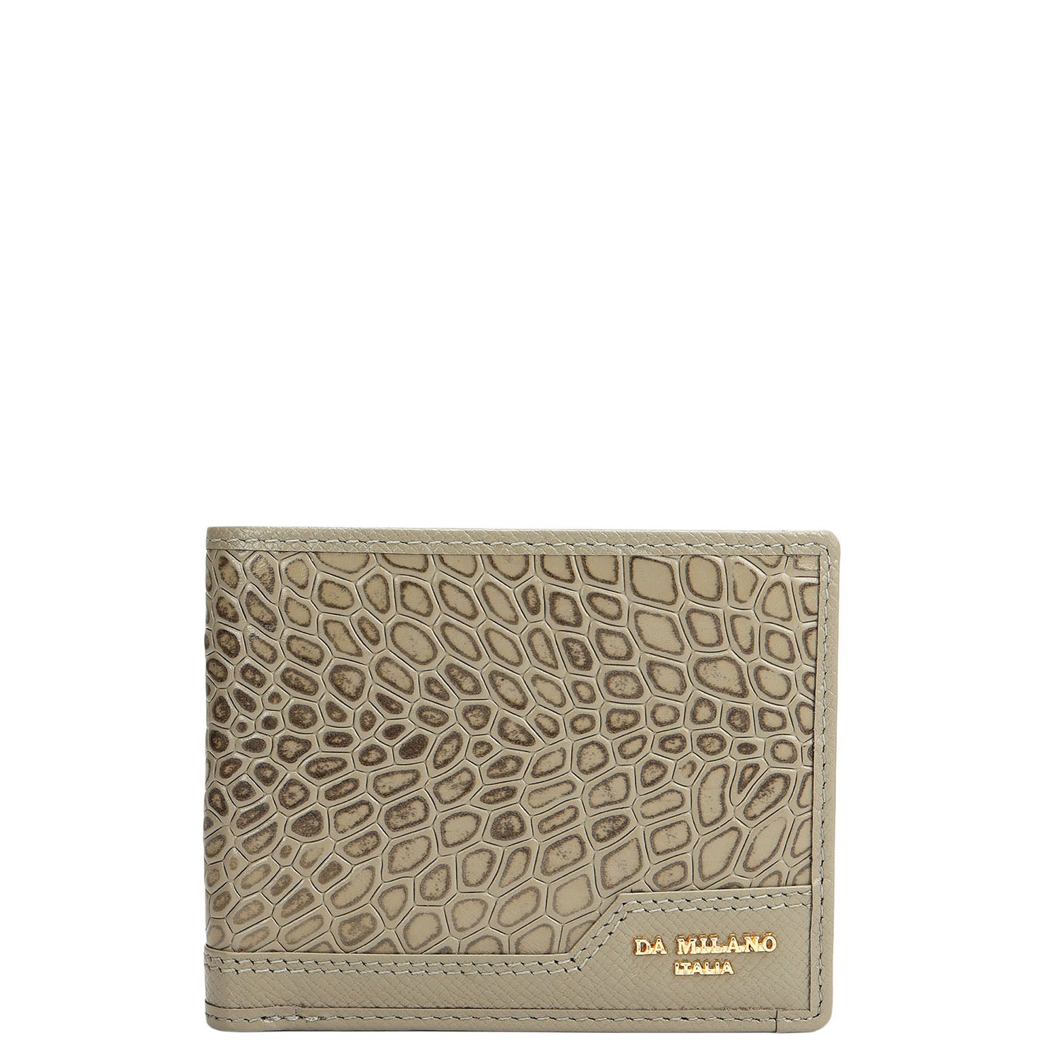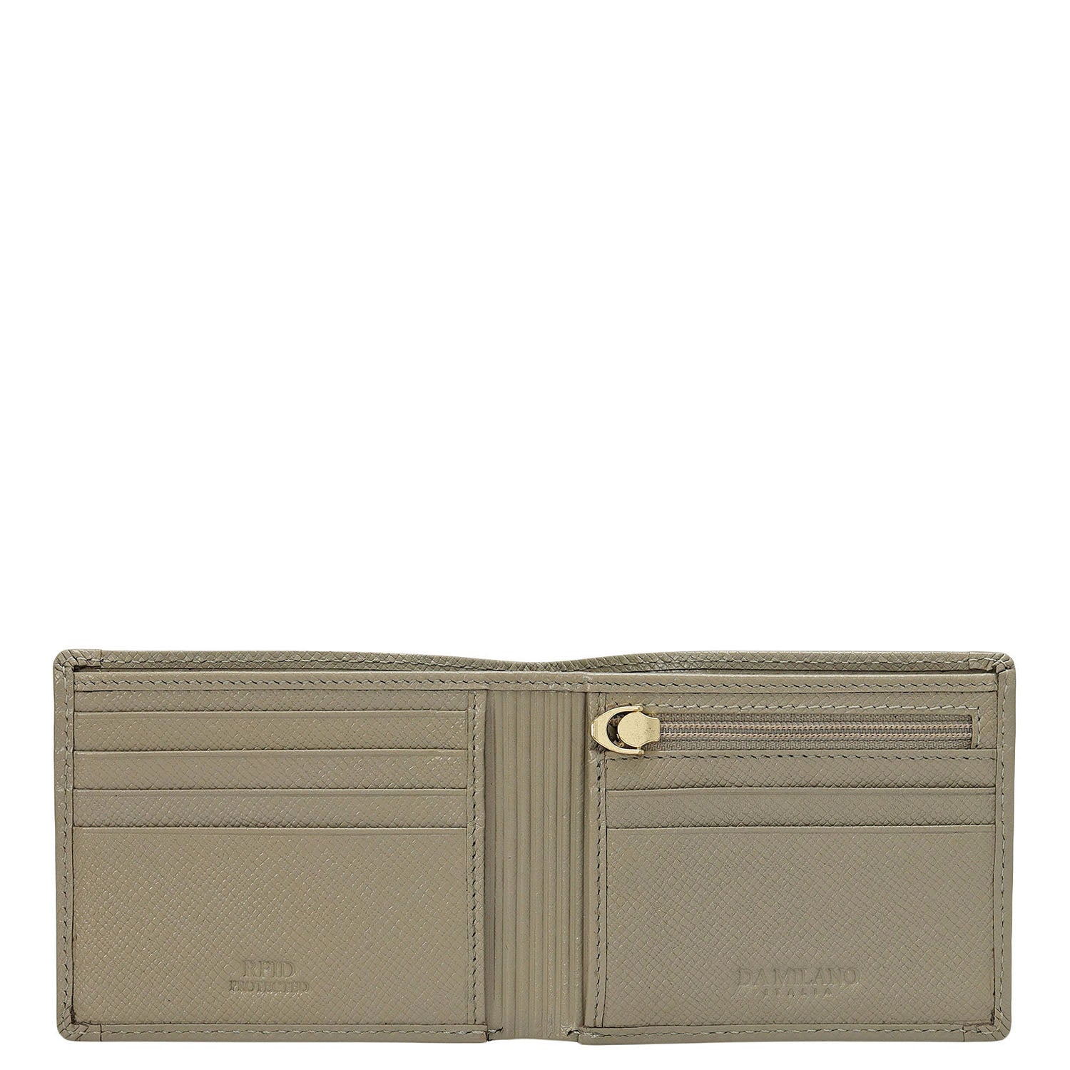 Crafted from textured leather, Da Milano men's bifold wallet offers a compact yet stylish design. Featuring easy-to-organize compartments, card slots, and pockets, it combines practicality with elegance. Subtle branding on the front enhances its refined appearance.