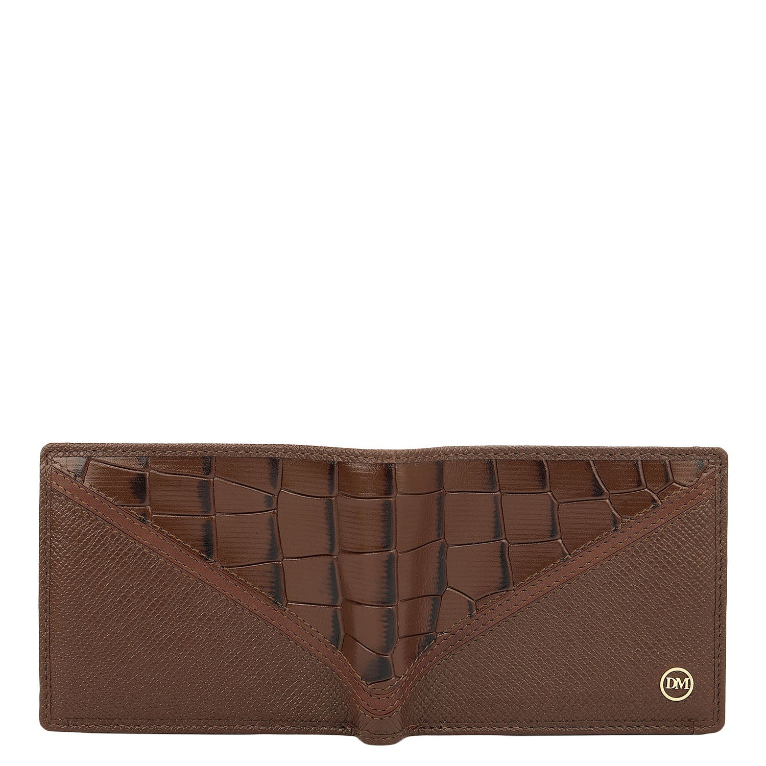 Crafted from textured leather, Da Milano men's bifold wallet offers a compact yet stylish design. Featuring easy-to-organize compartments, card slots, and pockets, it combines practicality with elegance. Subtle branding on the front enhances its refined appearance.