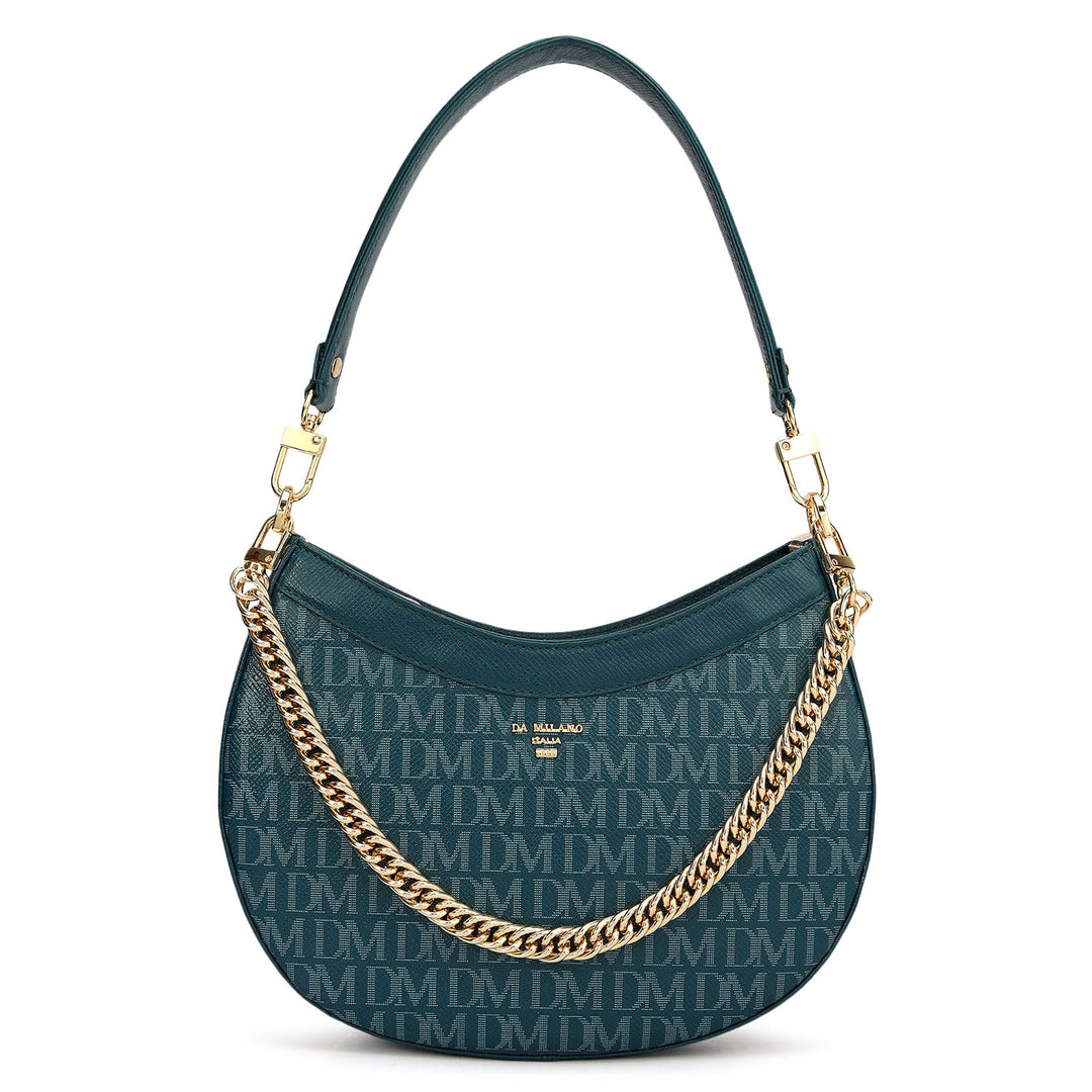 Small Monogram Franzy Leather Baguette - Teal