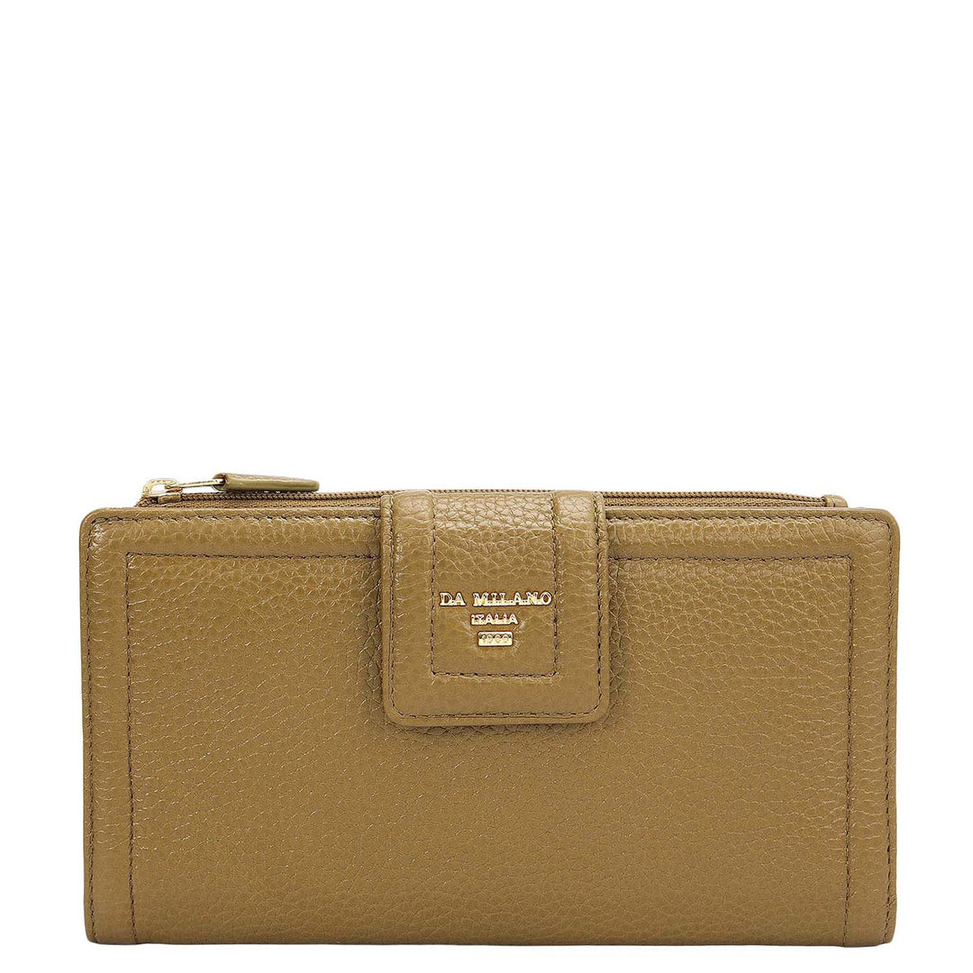 Canvas Wax Leather Ladies Wallet - Beige & Espresso
