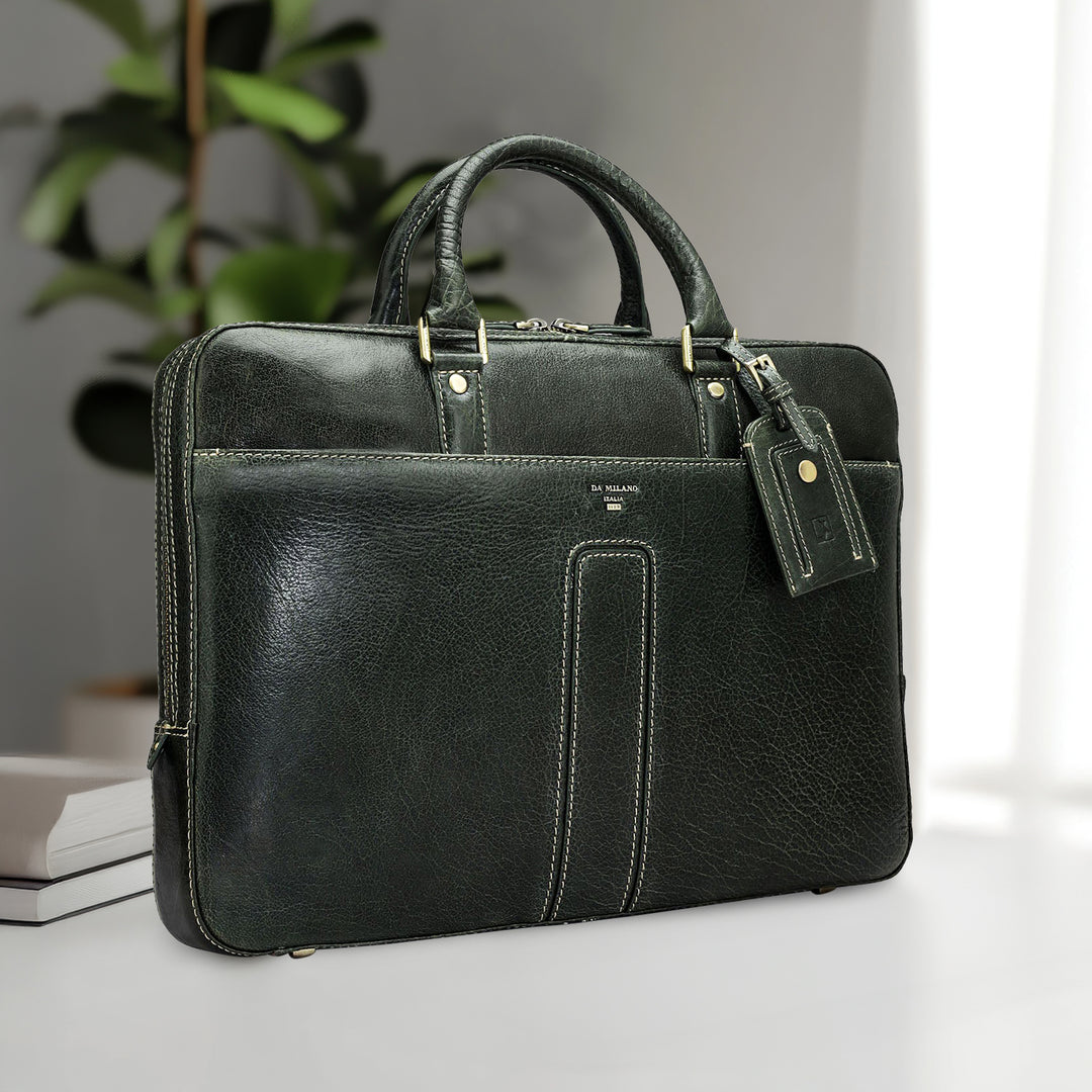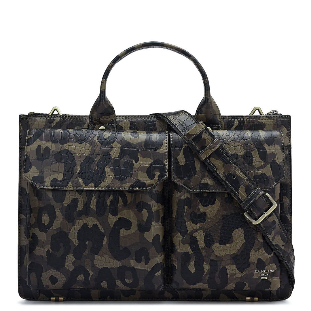 Military Green & Black Camouflage Leather Laptop Sleeve - Upto 14"