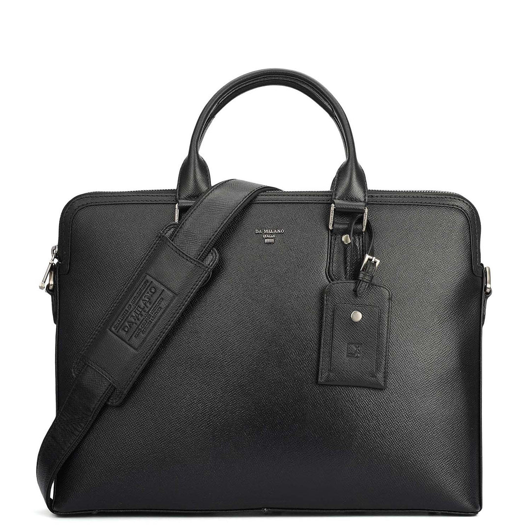 Plain Italian Leather Laptop Bag - Black