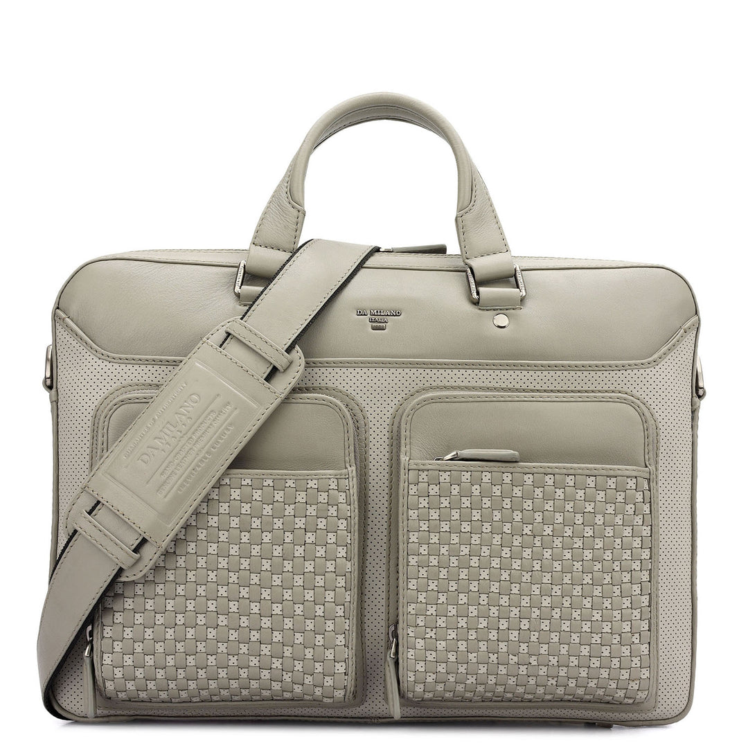 Croco Franzy Leather Laptop Bag - Smoke Grey