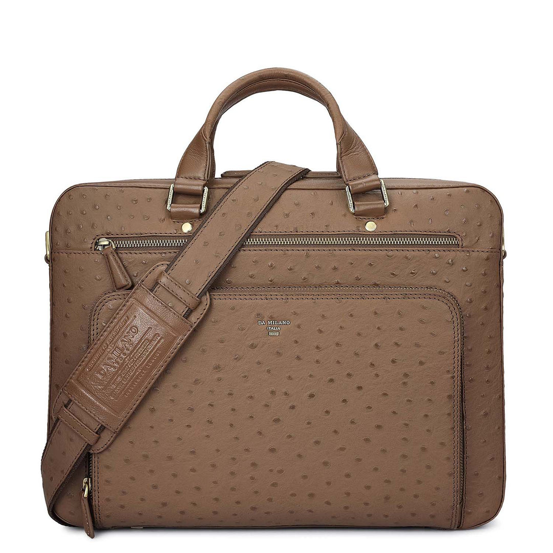Ostrich Leather Laptop Bag - Mocha