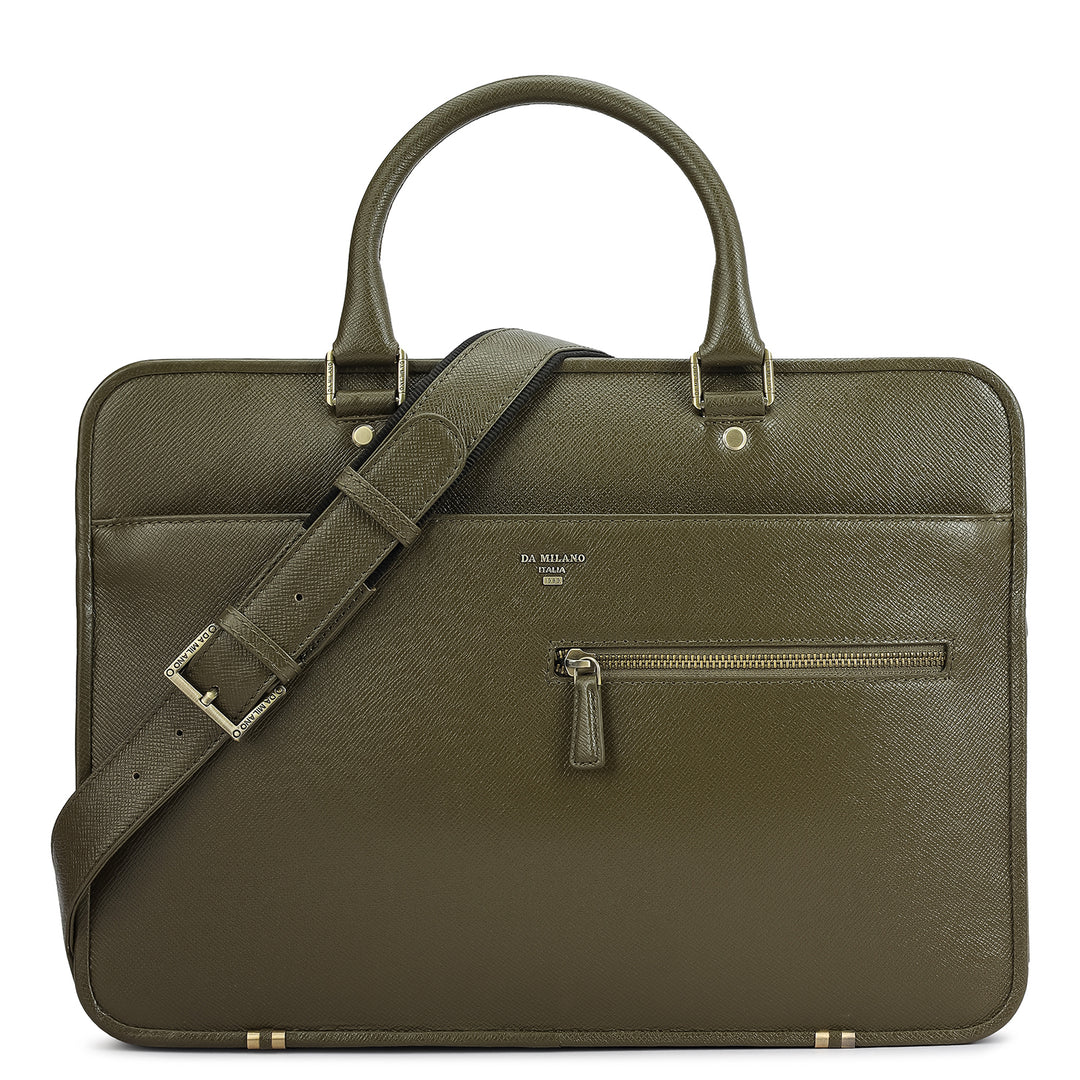 Franzy Leather Laptop Bag - Military Green