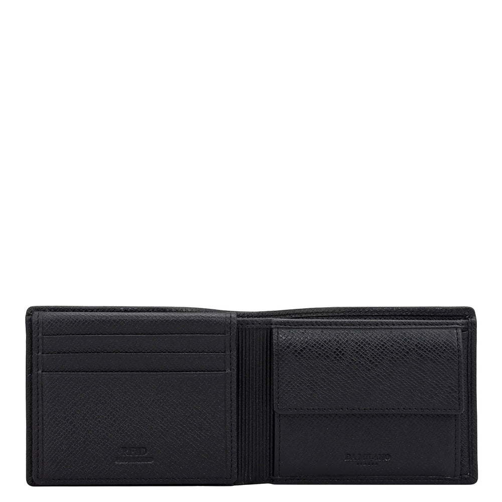 Crafted from textured leather, Da Milano men's bifold wallet offers a compact yet stylish design. Featuring easy-to-organize compartments, card slots, and pockets, it combines practicality with elegance. Subtle branding on the front enhances its refined appearance.
