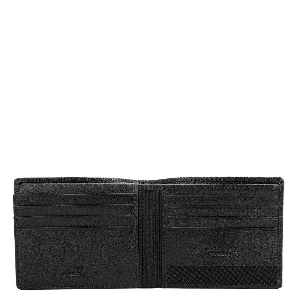 Crafted from textured leather, Da Milano men's bifold wallet offers a compact yet stylish design. Featuring easy-to-organize compartments, card slots, and pockets, it combines practicality with elegance. Subtle branding on the front enhances its refined appearance.