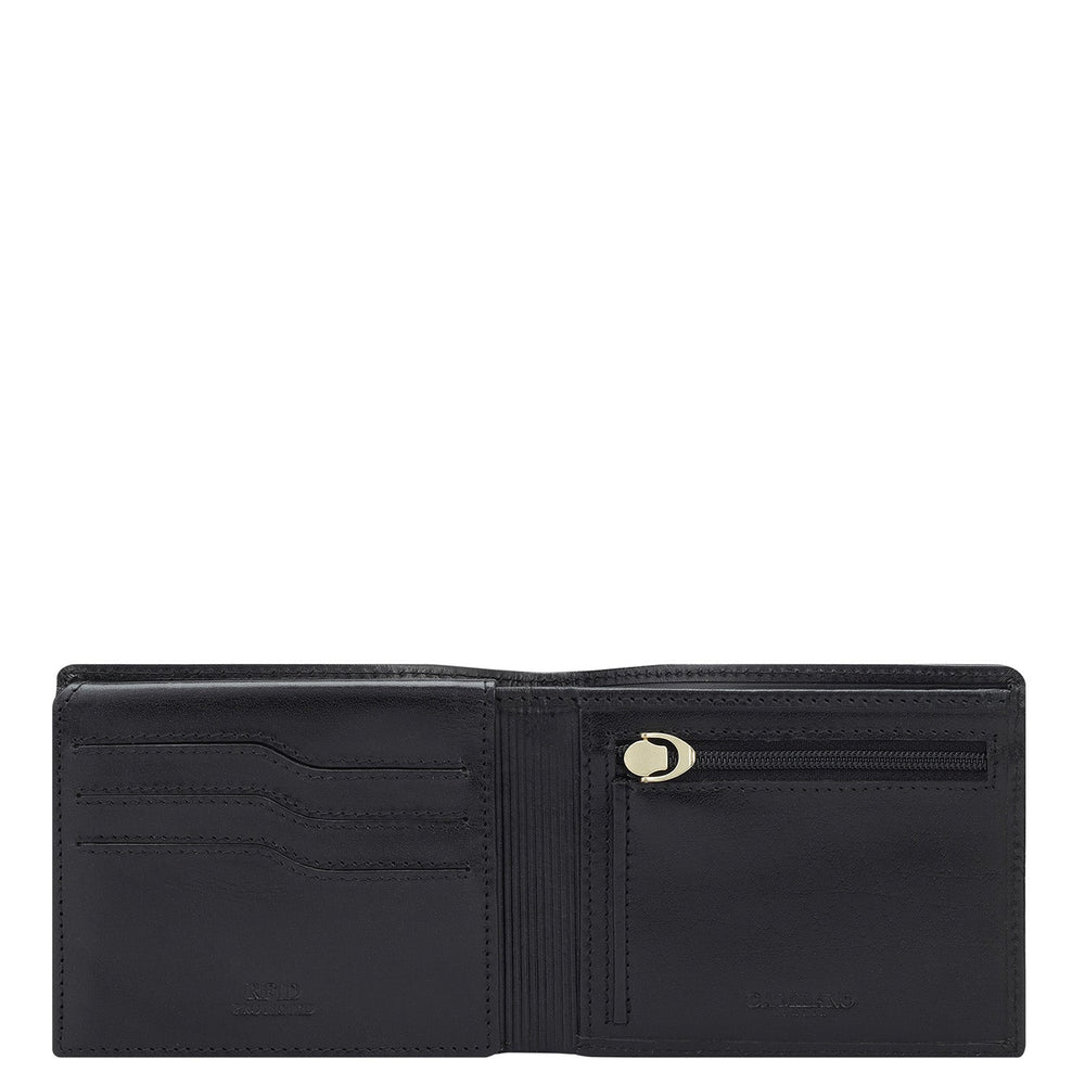 Crafted from textured leather, Da Milano men's bifold wallet offers a compact yet stylish design. Featuring easy-to-organize compartments, card slots, and pockets, it combines practicality with elegance. Subtle branding on the front enhances its refined appearance.