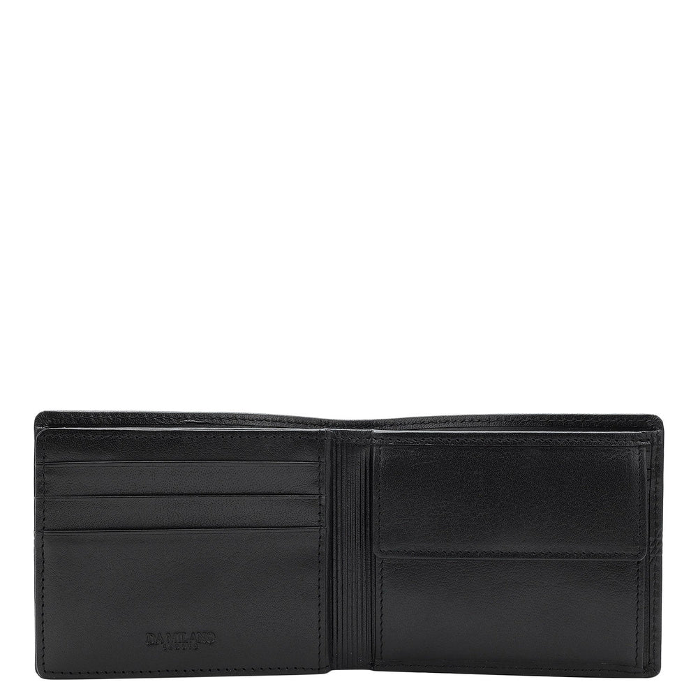 Crafted from textured leather, Da Milano men's bifold wallet offers a compact yet stylish design. Featuring easy-to-organize compartments, card slots, and pockets, it combines practicality with elegance. Subtle branding on the front enhances its refined appearance.