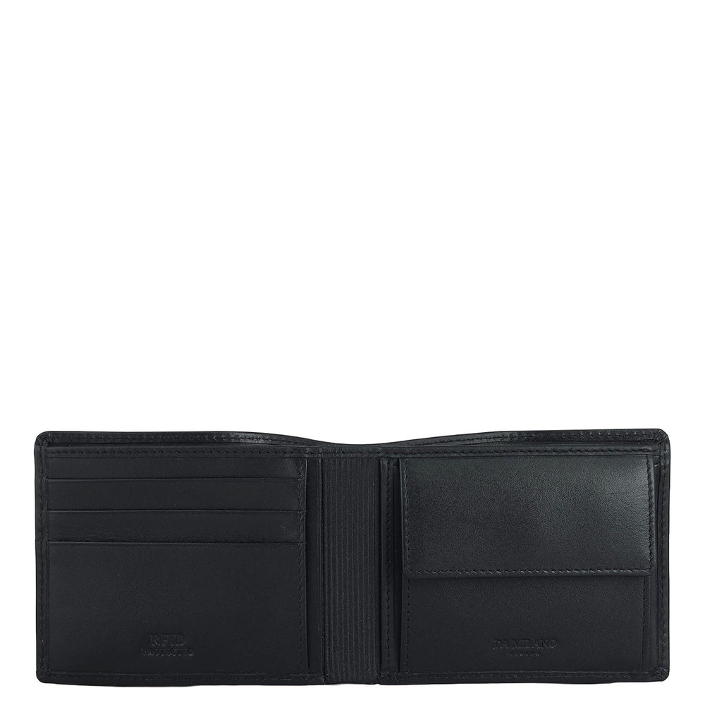 Crafted from textured leather, Da Milano men's bifold wallet offers a compact yet stylish design. Featuring easy-to-organize compartments, card slots, and pockets, it combines practicality with elegance. Subtle branding on the front enhances its refined appearance.