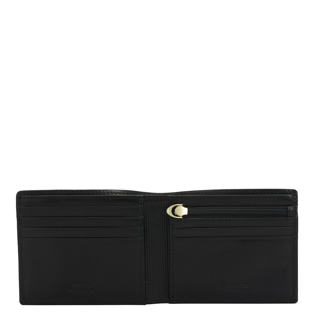 Crafted from textured leather, Da Milano men's bifold wallet offers a compact yet stylish design. Featuring easy-to-organize compartments, card slots, and pockets, it combines practicality with elegance. Subtle branding on the front enhances its refined appearance.