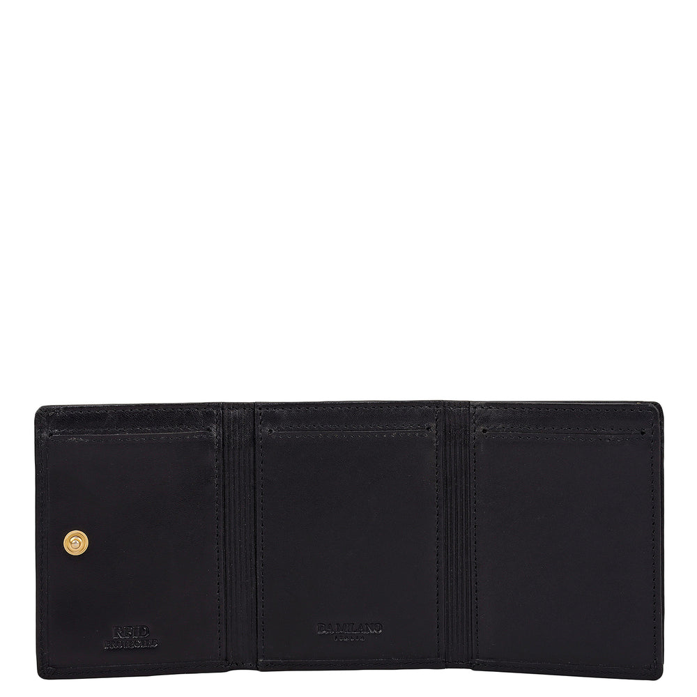 Crafted from textured leather, Da Milano men's trifold wallet offers a compact yet stylish design. Featuring easy-to-organize compartments, card slots, and pockets, it combines practicality with elegance. Subtle branding on the front enhances its refined appearance.