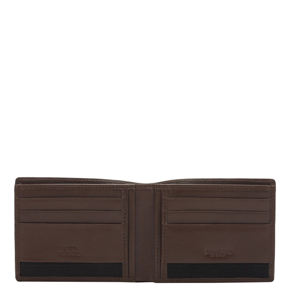 Crafted from textured leather, Da Milano men's bifold wallet offers a compact yet stylish design. Featuring easy-to-organize compartments, card slots, and pockets, it combines practicality with elegance. Subtle branding on the front enhances its refined appearance.