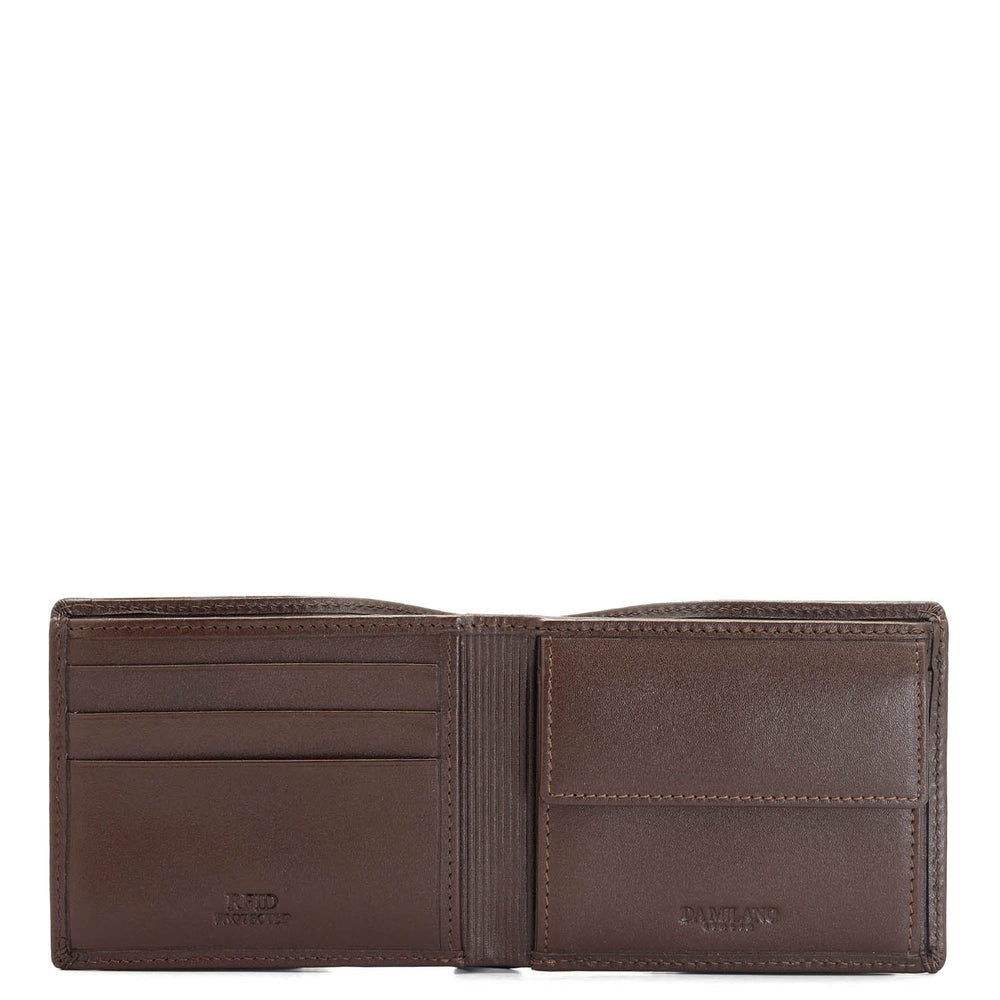 Crafted from textured leather, Da Milano men's bifold wallet (insert the sub category as per the product here) offers a compact yet stylish design. Featuring easy-to-organize compartments, card slots, and pockets, it combines practicality with elegance. Subtle branding on the front enhances its refined appearance.