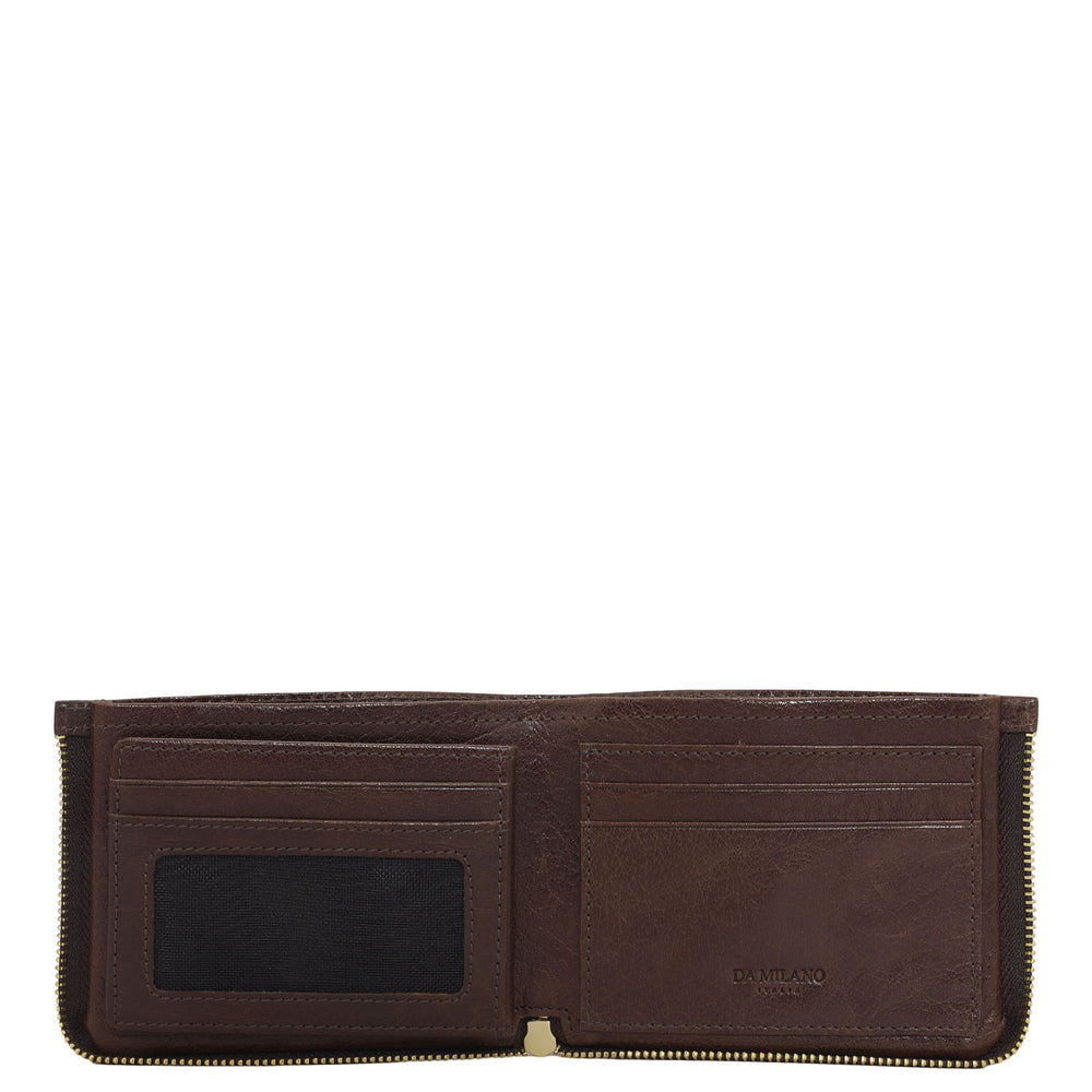 Crafted from textured leather, Da Milano men's bifold wallet offers a compact yet stylish design. Featuring easy-to-organize compartments, card slots, and pockets, it combines practicality with elegance. Subtle branding on the front enhances its refined appearance.