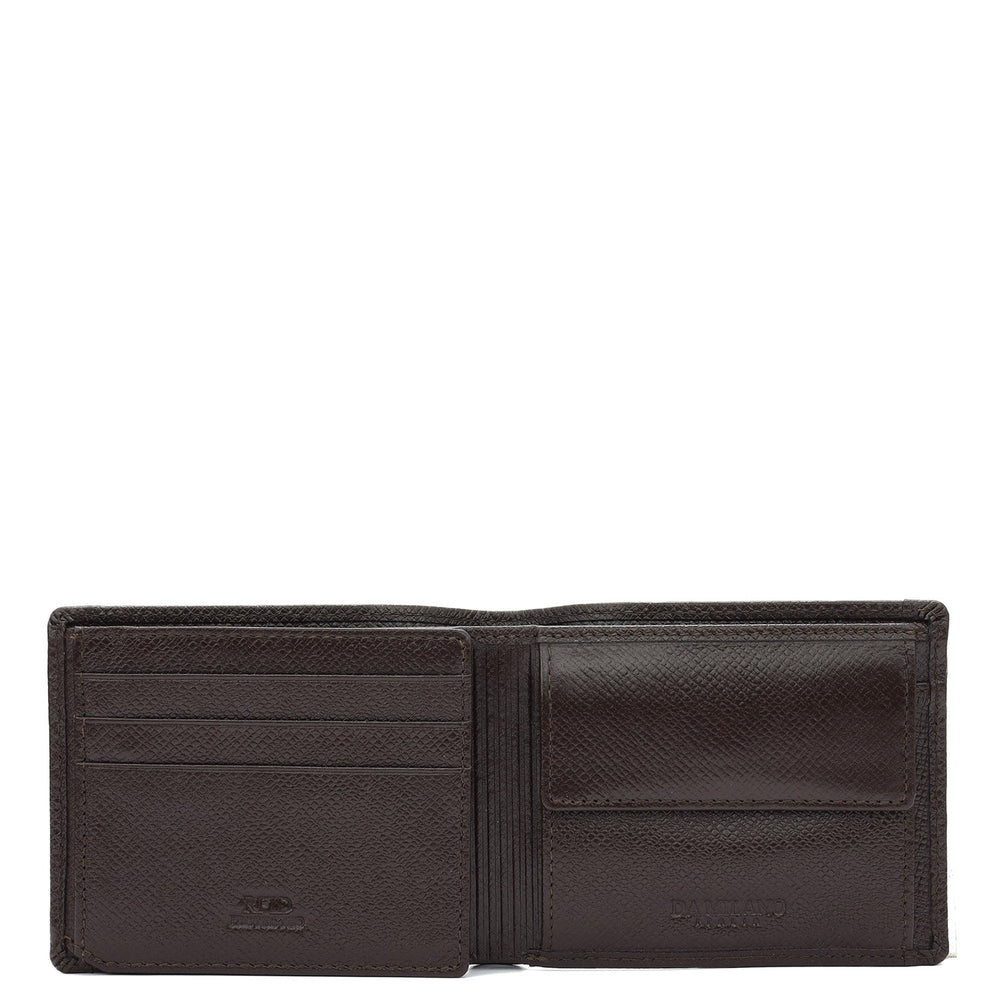 Crafted from textured leather, Da Milano men's bifold wallet offers a compact yet stylish design. Featuring easy-to-organize compartments, card slots, and pockets, it combines practicality with elegance. Subtle branding on the front enhances its refined appearance.