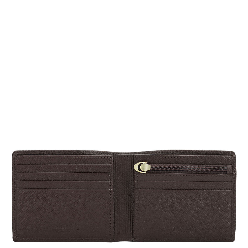 Crafted from textured leather, Da Milano men's bifold wallet (insert the sub category as per the product here) offers a compact yet stylish design. Featuring easy-to-organize compartments, card slots, and pockets, it combines practicality with elegance. Subtle branding on the front enhances its refined appearance.