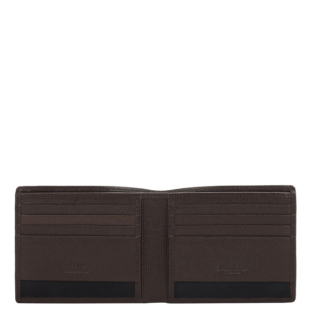 Crafted from textured leather, Da Milano men's bifold wallet offers a compact yet stylish design. Featuring easy-to-organize compartments, card slots, and pockets, it combines practicality with elegance. Subtle branding on the front enhances its refined appearance.