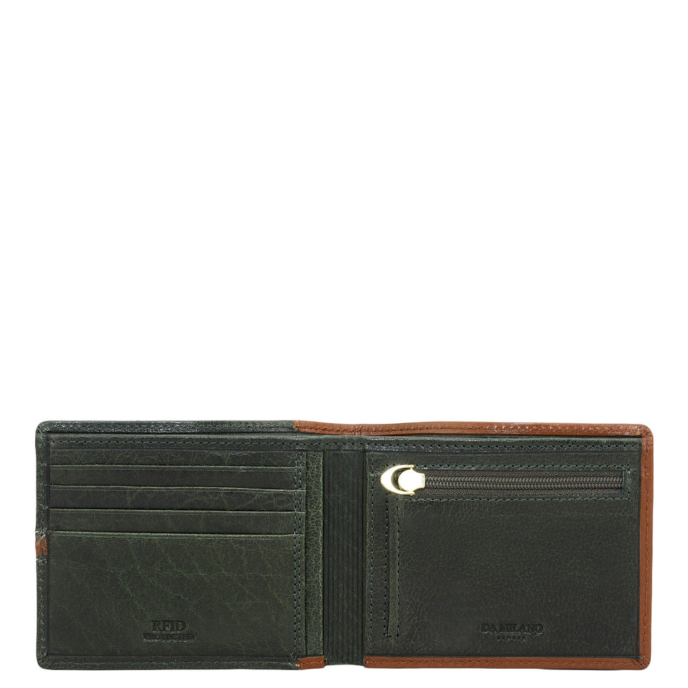 Crafted from textured leather, Da Milano men's bifold wallet offers a compact yet stylish design. Featuring easy-to-organize compartments, card slots, and pockets, it combines practicality with elegance. Subtle branding on the front enhances its refined appearance.
