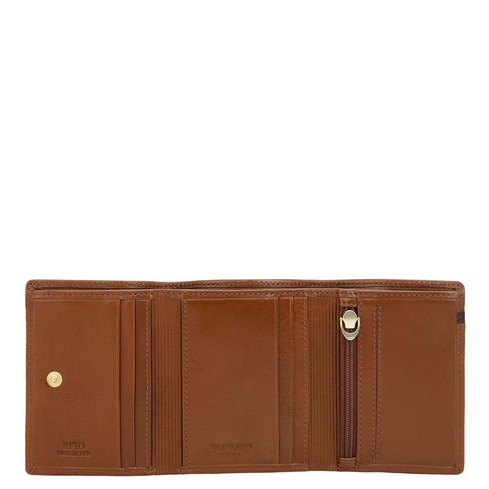 Crafted from textured leather, Da Milano men's trifold wallet offers a compact yet stylish design. Featuring easy-to-organize compartments, card slots, and pockets, it combines practicality with elegance. Subtle branding on the front enhances its refined appearance.