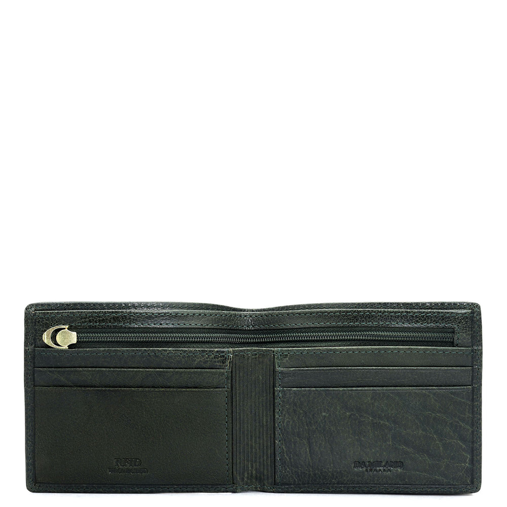 Crafted from textured leather, Da Milano men's bifold wallet offers a compact yet stylish design. Featuring easy-to-organize compartments, card slots, and pockets, it combines practicality with elegance. Subtle branding on the front enhances its refined appearance.